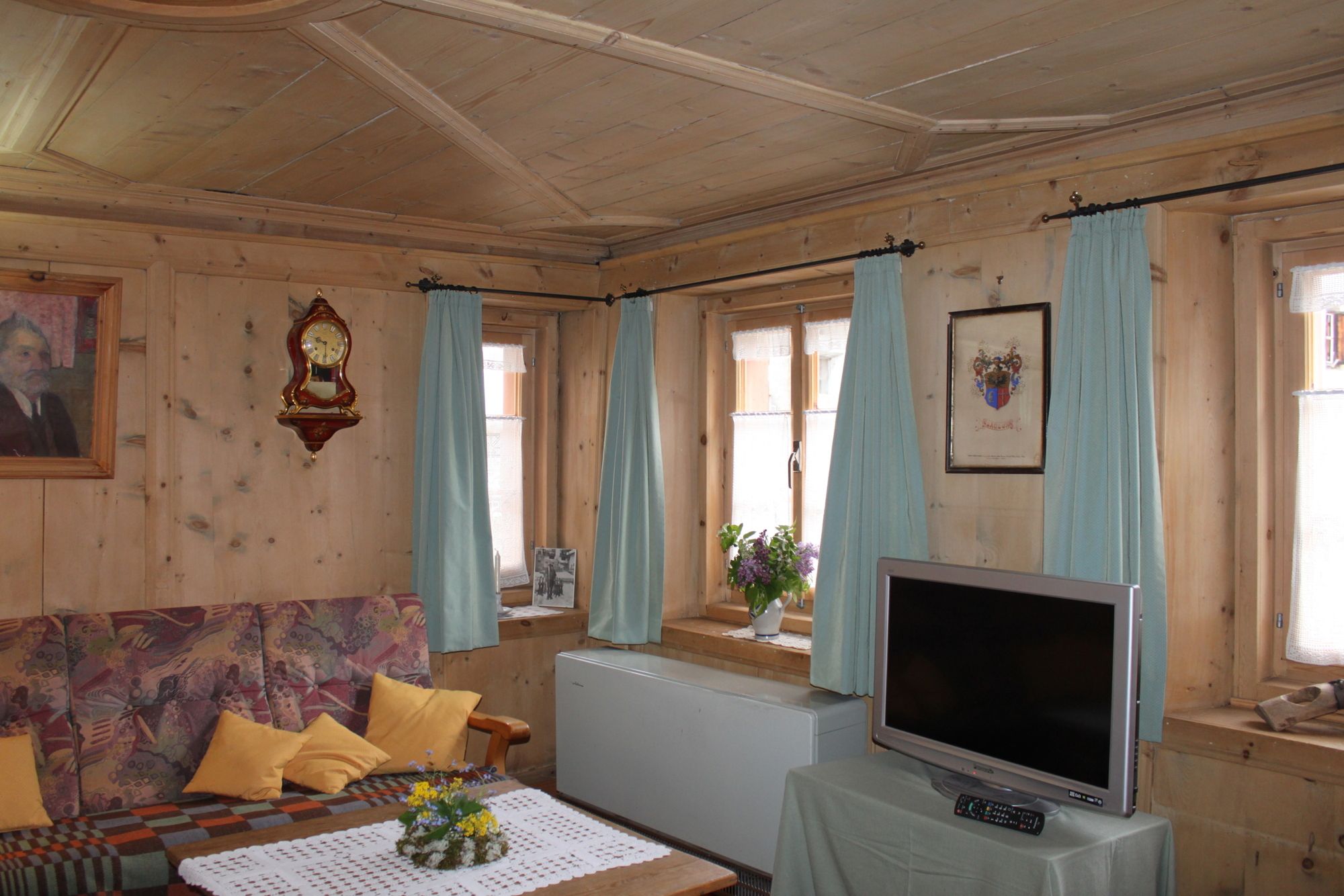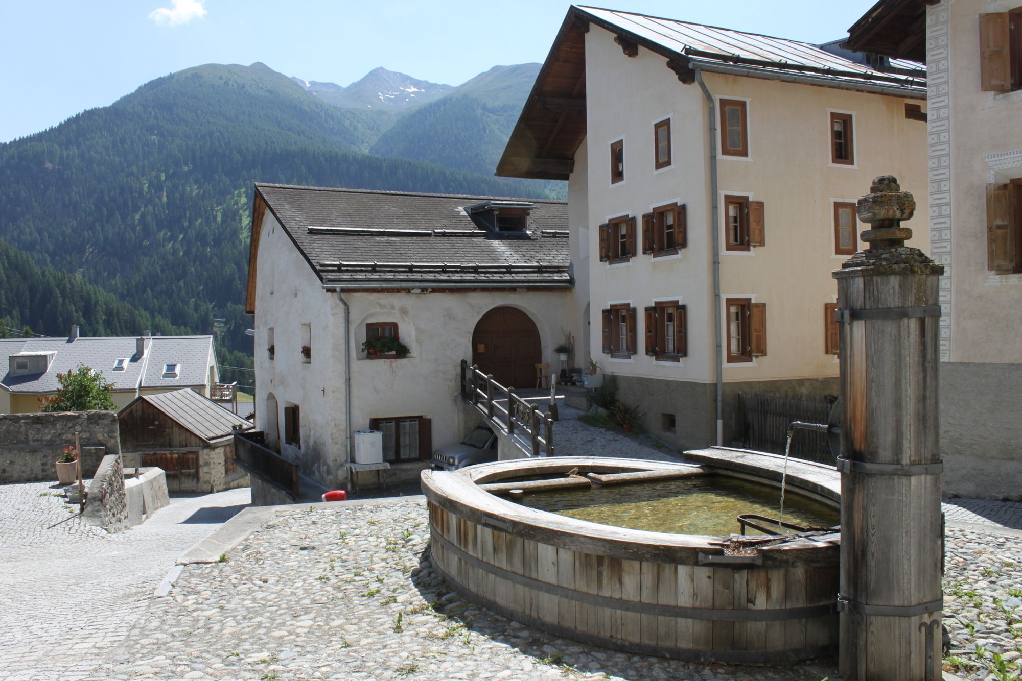 Ruhig gelegen, gemütliche Atmosphäre, Arven Stube gegen Dorfbrunnen, großer Garten mit Sitzplatz Südseitig.