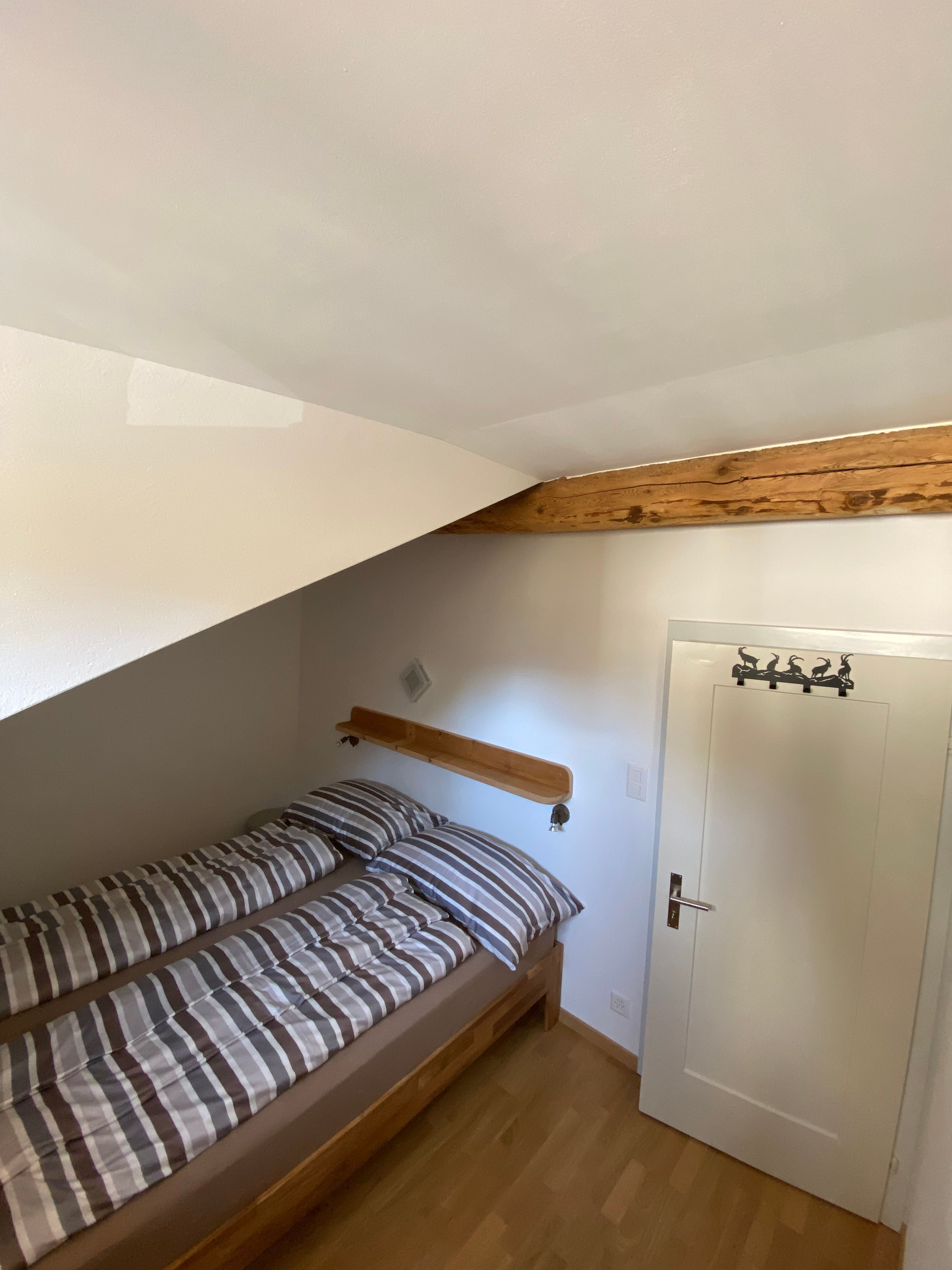 Zimmer 2 mit 1 Einzelbett und Resevebett, kleiner Schrank