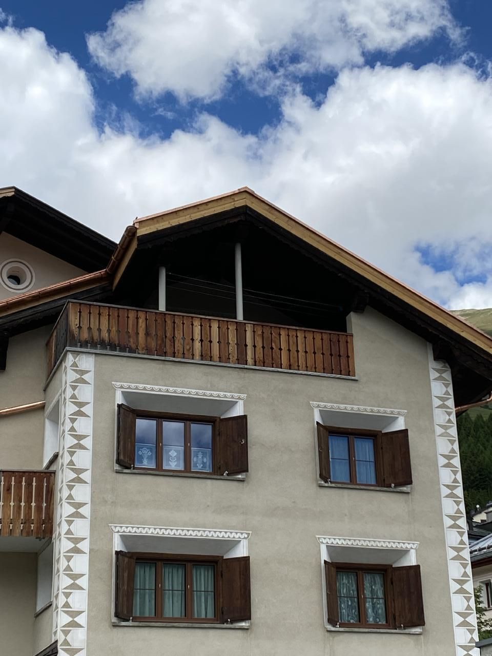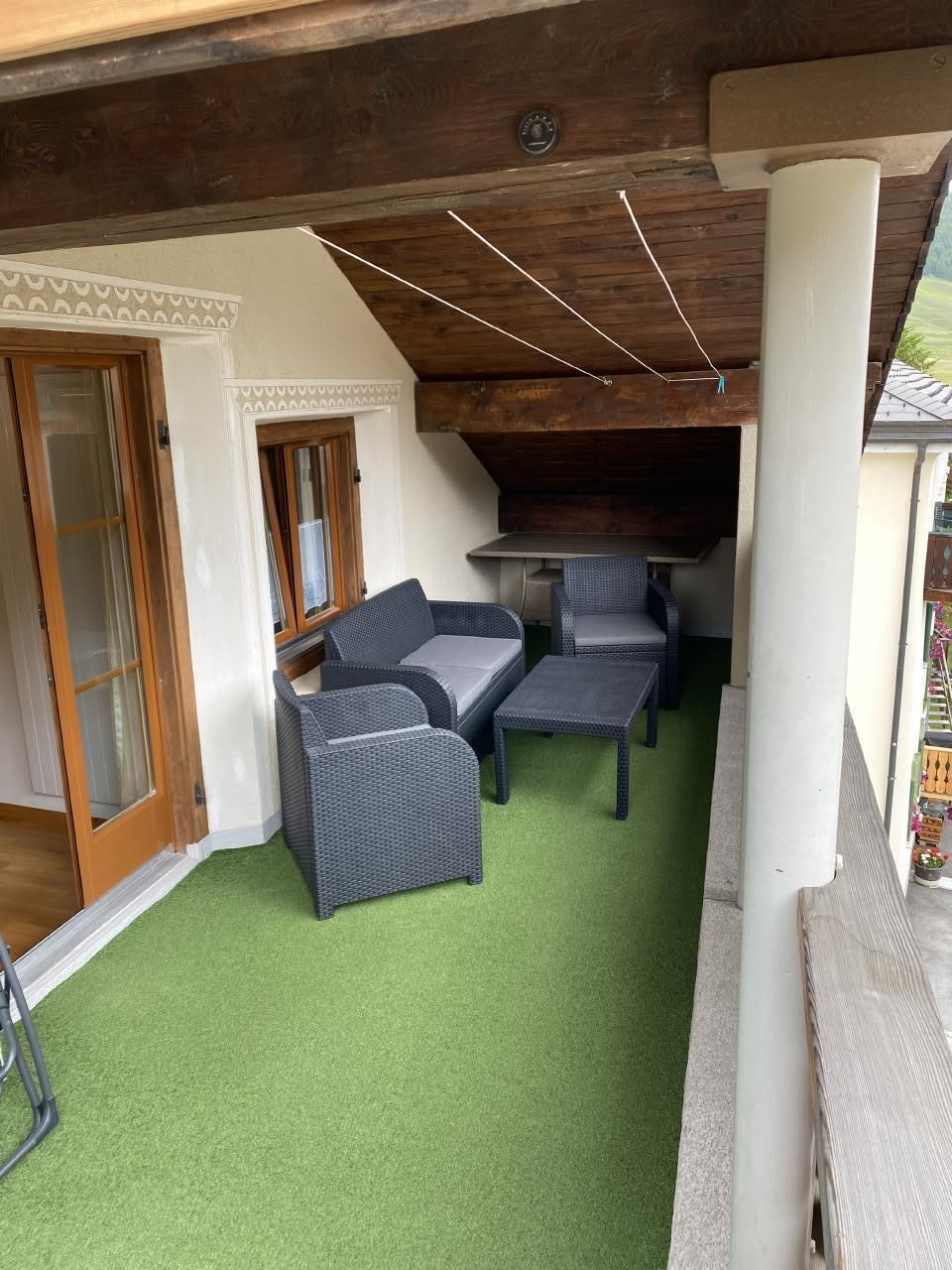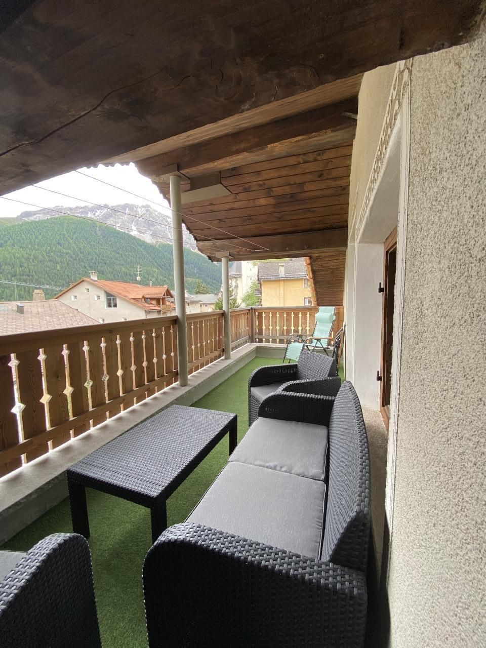 Die Ferienwohnung ist ruhig gelegen mit sonnigem Balkon und herrlicher Aussicht auf unsere Hausberge, Arpiglia, piz Mezzaun und piz d`Esan.