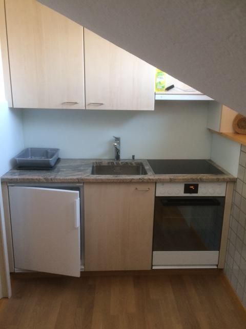 Einfache Küche neu renoviert im Jahr 2016 mit Backofen und Glaskeramikherd.