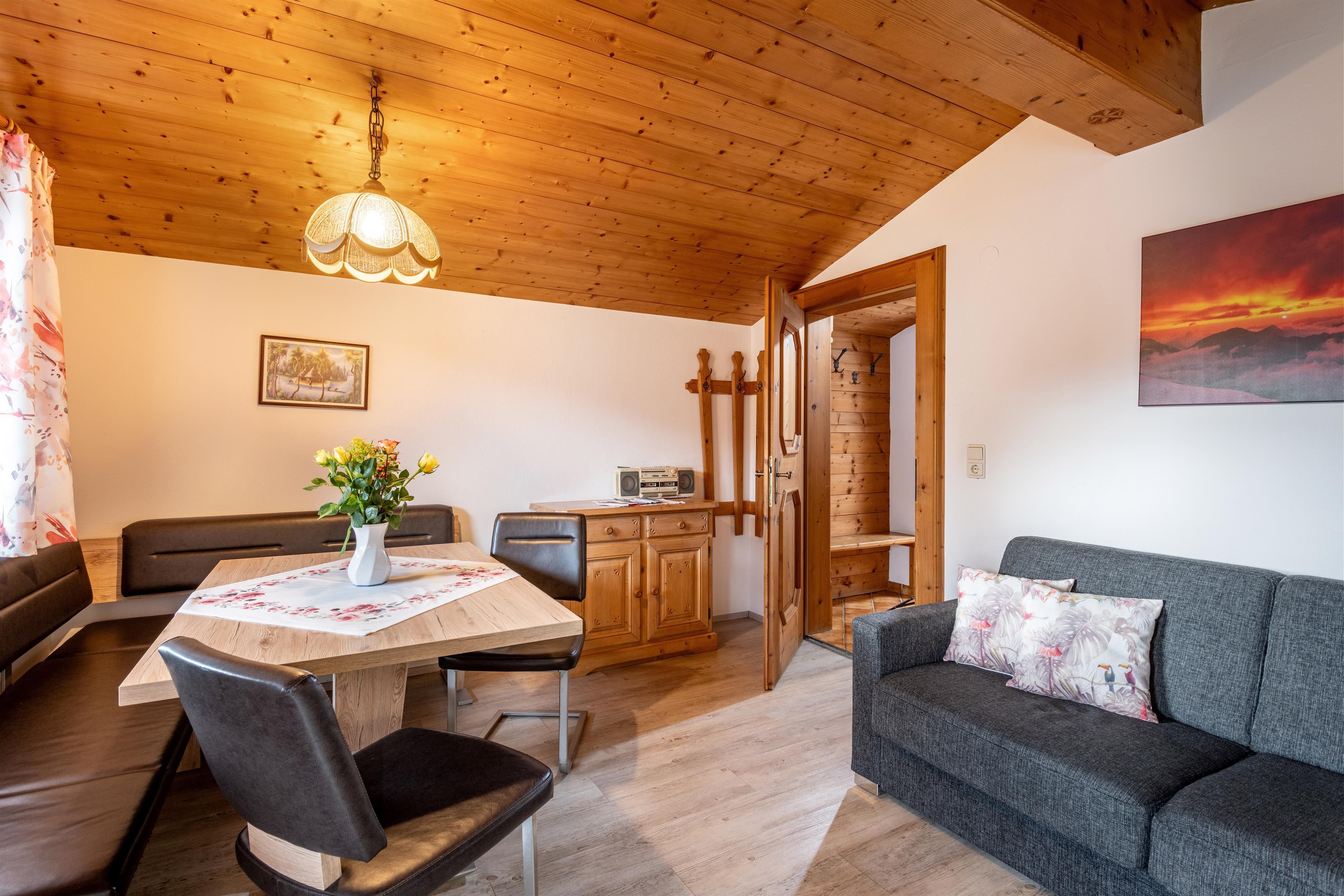 gemütliche Ferienwohnung mit Balkon im 1. Stock; verfügt über 1 Doppelzimmer und 1 Dreibettzimmer; Badezimmer mit Dusche/WC, große Wohnküche, Balkon