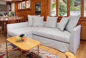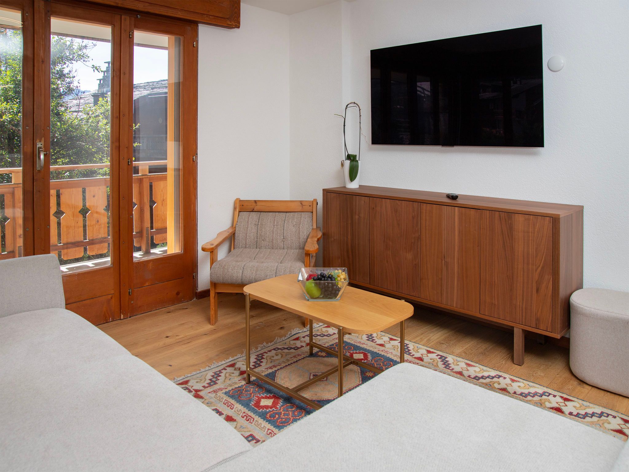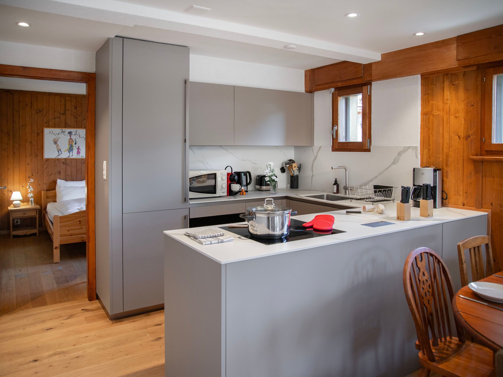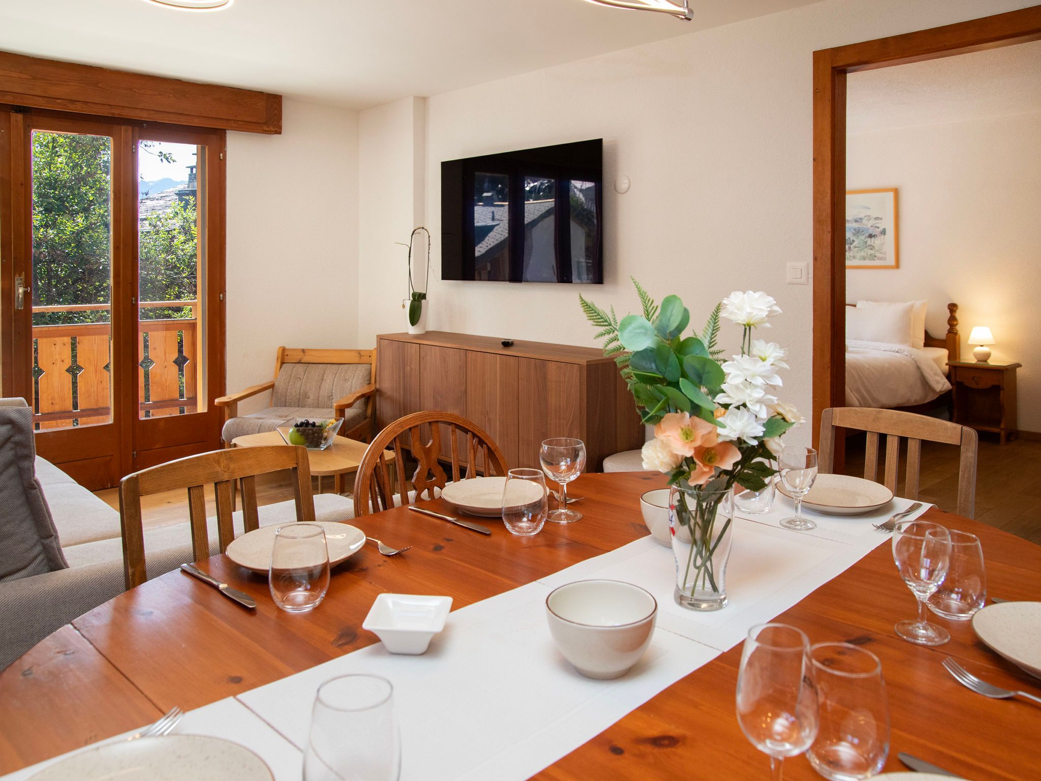 Val Fleuri 208, 4-Zimmer-Wohnung 100 m2 im 2. Stock, Südlage. Schön und geschmackvoll eingerichtet: grosses Wohn-/Esszimmer mit offenem Kamin und Kabel-TV (Flachbildschirm). Ausgang zur Terrasse. 1 grosses Zimmer mit 1 Doppelbett (1 x 160 cm, Länge 200 cm). Ausgang zur Terrasse. 2 grosse Zimmer, jedes Zimmer mit 2 Betten (90 cm, Länge 200 cm). Offene Küche (4 Kochplatten, Backofen, Geschirrspüler, Toaster, Wasserkocher, Mikrowelle, Tiefkühler, elektrische Kaffeemaschine, Kapseln für die Kaffeemaschine (Nespresso) extra, Racletteofen, Fondue Set (Käse)) mit Durchreiche. Bad/WC, Dusche/WC. Heizung, E-Heizung, Fussbodenheizung. Parkettboden. Sehr schöne Sicht auf die Berge. Zur Verfügung: Waschmaschine, Wäschetrockner, Haartrockner. Internet (WLAN, gratis). Parkplatz. Bitte beachten: Nichtraucher-Unterkunft.