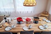 WOKA 1, 5-Zimmer-Doppelhaushälfte auf 2 Stockwerken. Geräumig und hell, zweckmässig und gemütlich eingerichtet: offenes Wohn-/Esszimmer mit Essecke, Radio und E-Heizofen. Ausgang zum Balkon. 1 Zimmer mit 1 Bett (90 cm, Länge 200 cm). Küche (3 Kochplatten, Backofen, Geschirrspüler, Toaster, Wasserkocher, elektrische Kaffeemaschine, Kapseln für die Kaffeemaschine (Delizio) extra, Racletteofen, Fondue Set (Käse)) mit Durchreiche. Sep. WC. E-Heizung. Obergeschoss: 1 Doppelzimmer mit 1 Doppelbett (180 cm, Länge 200 cm). Ausgang zum Balkon. 1 Kinderzimmer mit 1 x 2 Etagenbetten (90 cm, Länge 200 cm). 1 Zimmer mit 2 Betten (90 cm, Länge 200 cm). Bad/Dusche/WC, Doppelwaschbecken. E-Heizung. Grosser Balkon, Südlage und Westlage. Herrliche Panoramasicht auf die Berge und das Tal. Zur Verfügung: Kinderhochstuhl, Babybett (extra), Haartrockner, Wickelkommode. Internet (WLAN, gratis). Garage (2 Autos), Höhe 190 cm. Bitte beachten: geeignet für Familien. Nichtraucher-Unterkunft. Rauchmelder, Feuerlöscher.