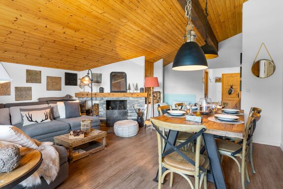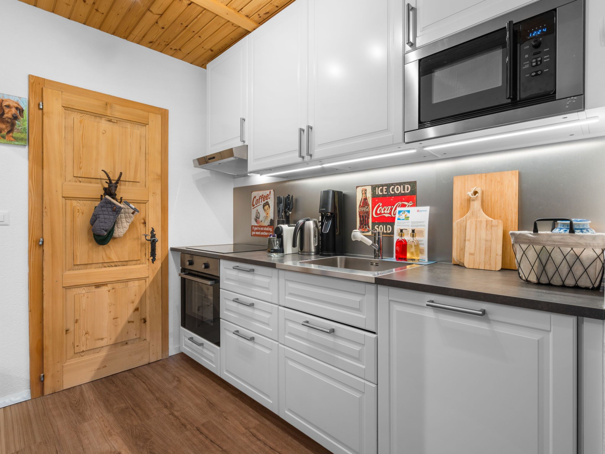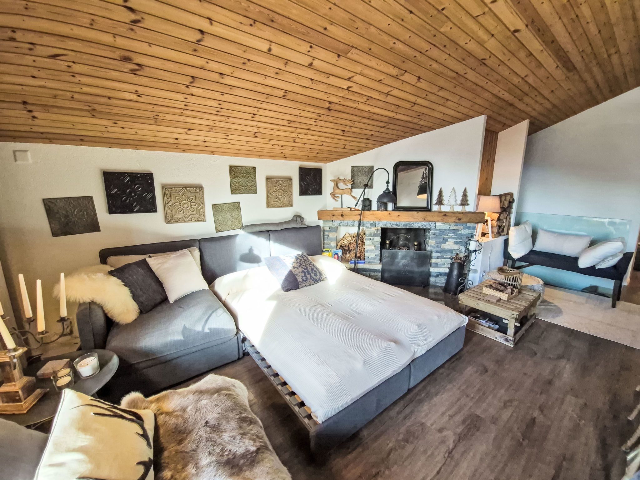 Faucon 1B, 2-Zimmer-Wohnung 65 m2, im Dachgeschoss, Südwestlage. Hell, abgeschrägt, vollständig renoviert, schön und geschmackvoll eingerichtet: Wohn-/Esszimmer mit 1 Doppeldiwanbett (2 x 80 cm, Länge 200 cm), offenem Kamin und Esstisch. Ausgang zum Balkon. 1 abgeschrägtes grosses Zimmer mit 1 franz. Bett (160 cm, Länge 200 cm), Kabel-TV und Flachbildschirm. Offene Küche (Backofen, Geschirrspüler, 4 Glaskeramikplatten, Wasserkocher, Mikrowelle, elektrische Kaffeemaschine, Kapseln für die Kaffeemaschine (Nespresso) extra, Racletteofen, Fondue Set (Chinoise, Käse)). Dusche/WC. Balkon 10 m2, Westlage. Balkonmöbel, Liegestühle (1). Fernsicht auf die Berge, die Landschaft und den Wald. Zur Verfügung: Bügeleisen, Haartrockner. Internet (WLAN, gratis). Garage (1 Auto), Höhe 190 cm, Breite 230 cm. Bitte beachten: Nichtraucher-Unterkunft.