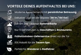 Ankommen und sich wohl fühlen, Urlaub bei Freunden. Der 360 Grad Ausblick auf das Kitzsteinhorn, unseren Hausberg den Maiskogel und die umliegende Bergwelt lädt zu diversen sportlichen Aktivitäten, Ausflügen und unvergesslichen Erlebnissen ein. Skienthusiasten genießen unsere Bestlage mit wirklichem Ski IN Ski OUT, denn unser Appartementhaus steht direkt an der Piste. Im Sommer können ihre Urlaubstage mit diversen Aktivitäten der Zell am See Kaprun Sommerkarte verbracht werden, all inclusive für sie für die Dauer ihres Aufenthaltes bei uns.