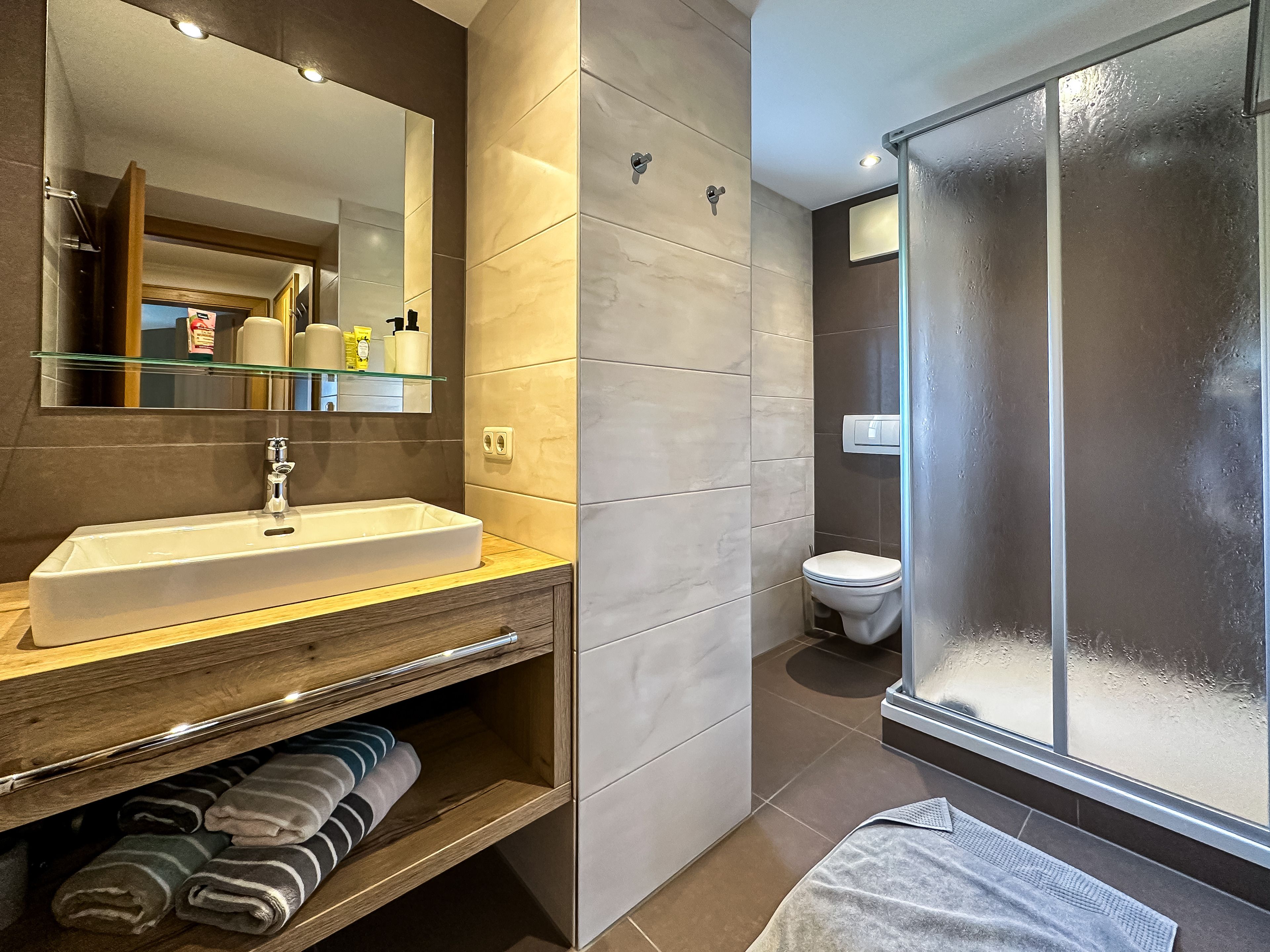 - Hand-, Bade- und Geschirrtücher, sowie Bettwäsche sind im Appartement vorhanden