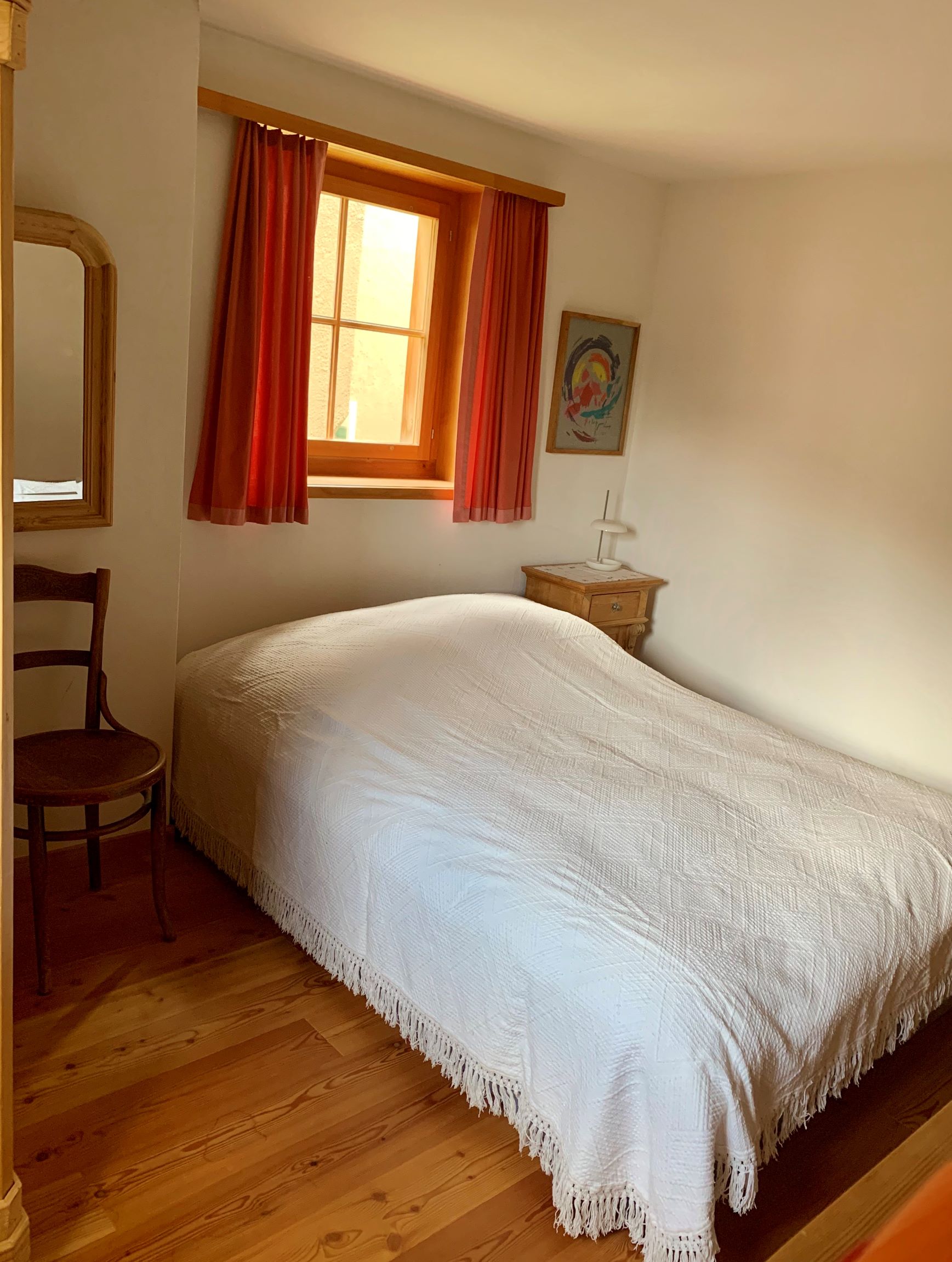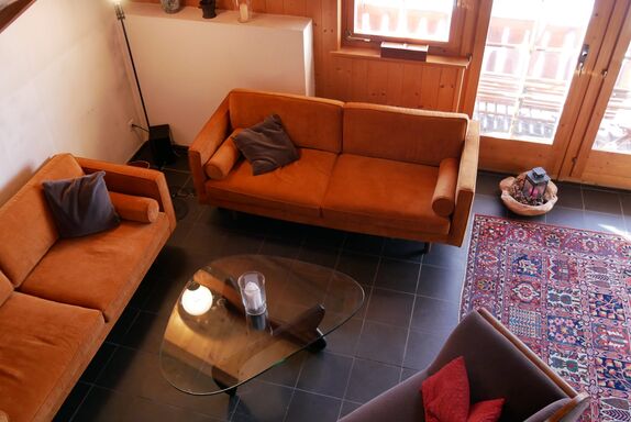 Die moderne aber dennoch heimelige Wohnung ist der perfekte Ort, um mit der Grossfamilie oder Freunden erholsame Tage in den Bergen zu verbringen. Der geräumige Wohn- und Essraum im oberen Stock besticht mit einer Aussicht auf den Dorfkern und das Albulatal. Der geschmackvoll eingerichtete Wohnraum mit Cheminée, Schieferboden und alten Holzbalken strahlt Wärme und Ruhe aus. Auf demselben Stock befindet sich die voll ausgerüstete Küche und ein Badezimmer mit Badewanne und einer Toilette. Die vier Schlafzimmer mit jeweils 140er Doppelbetten, einem Badezimmer mit Dusche und WC sowie einem separaten WC befinden sich auf Niveau des Hauseingangs.