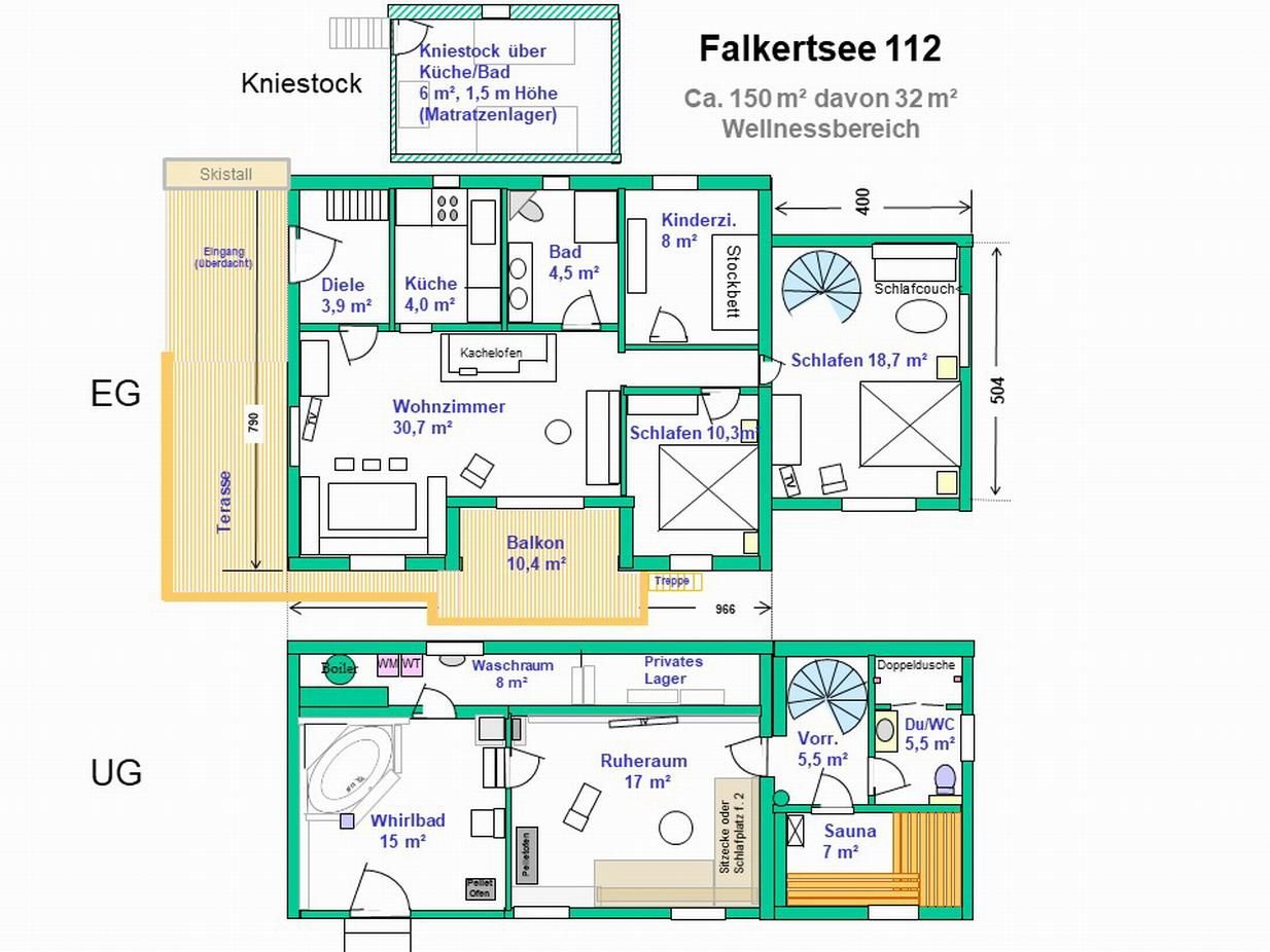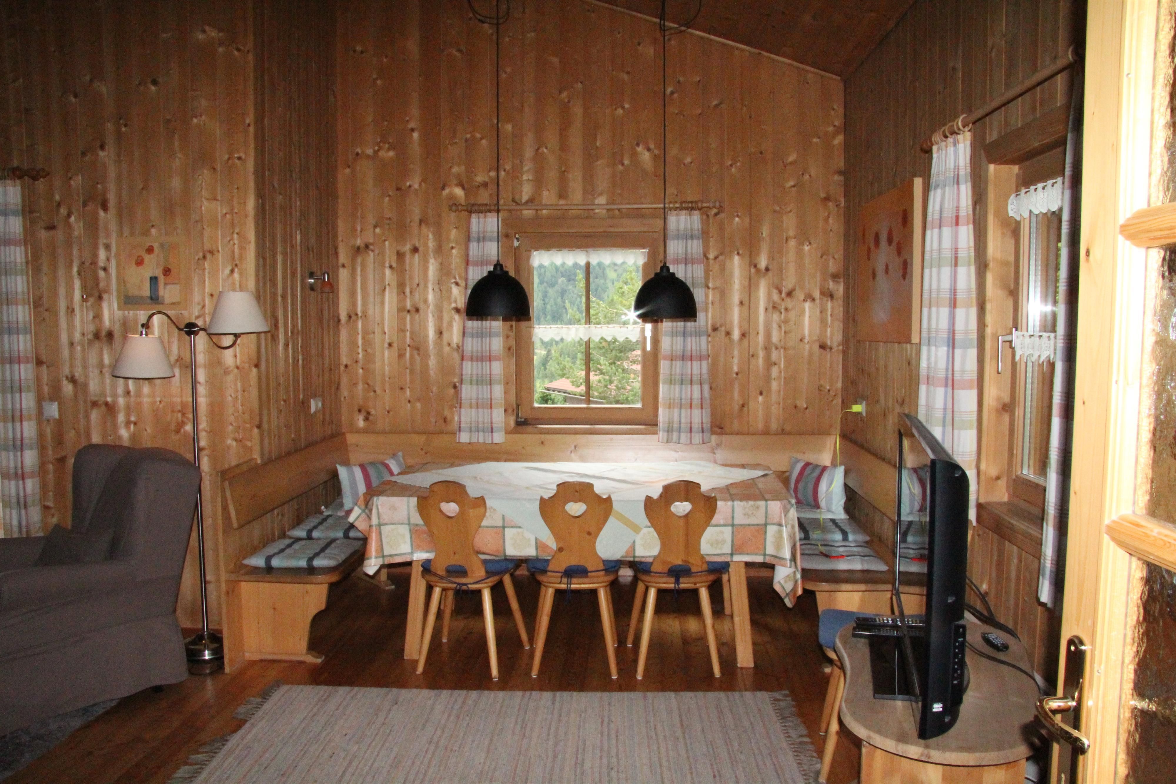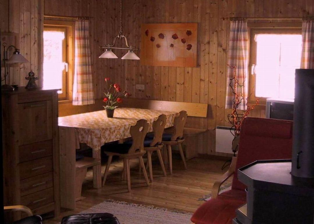 Gemütliches, freistehendes Blockhaus mit 120 qm Wohnfläche am Südhang auf 1800 m Seehöhe, geeignet für 2 bis 8 (max. 10) Personen und sehr familienfreundlich. Großes Ess-/Wohnzimmer, das bis in das Dach ausgebaut ist mit großem Südbalkon. Die Küche ist komplett eingerichtet. Es gibt 3 Schlafzimmer, eines mit Doppelbett, das andere mit Stockbett und das dritte mit Doppelbett und Schlafcouch. Ein Matratzenlager für 2-3 Personen ist im Kniestock über eine Stiege erreichbar. Es gibt 2 Bäder, eine Whirlwanne und eine Sauna mit Ruheraum, Weitere Ausstattung: Waschmaschine,Trockner, Babybett, Kinderstuhl, LCD Fernseher, CD/DVD Player und WLAN . Heizung mit gemütlichem Kaminofen und Pelletofen und ggf. elektrisch. Skilifte in 700 m Entfernung, Wandern kann man direkt von der Hütte aus. Die Hütte ist mit dem Auto erreichbar (im Winter Schneeketten). Parken in 50 m Entfernung. Gute Betreuung vor Ort. Es gibt Spezialpreise im Frühjahr und Herbst und bei Belegung mit 2 Personen
