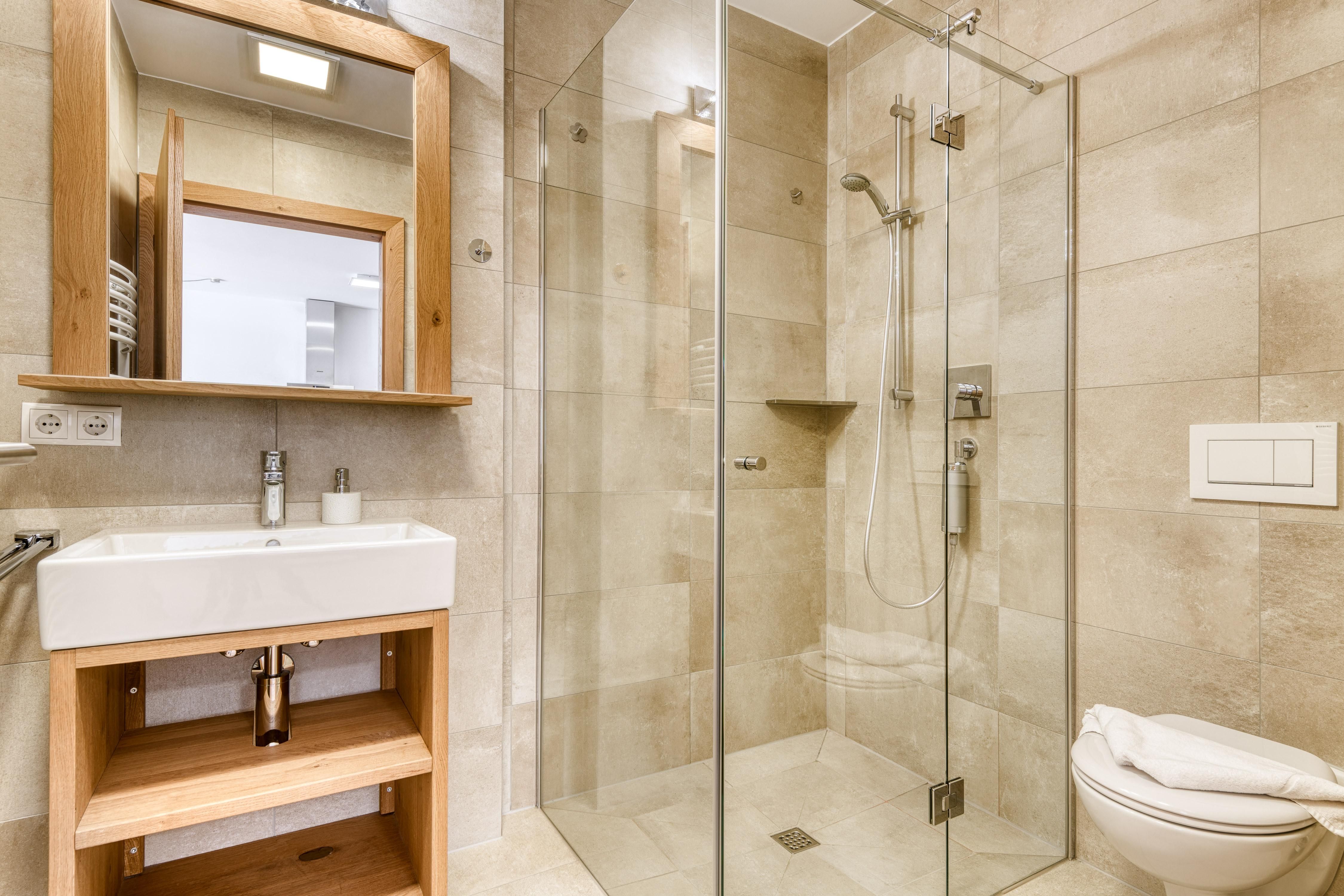 • 1 Badezimmer mit begehbarer Dusche