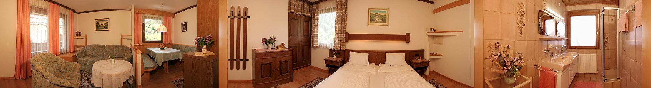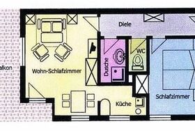 Wohnschlafzimmer mit ausziehbarer Doppelliege, Küche mit Glaskeramik- Kochfeld, Mikrowellenherd, Backofen, 1 Doppelzimmer, Vorraum, Dusche, WC, SAT-TV, Telefon, WLAN- Internetanschluss, Safe.