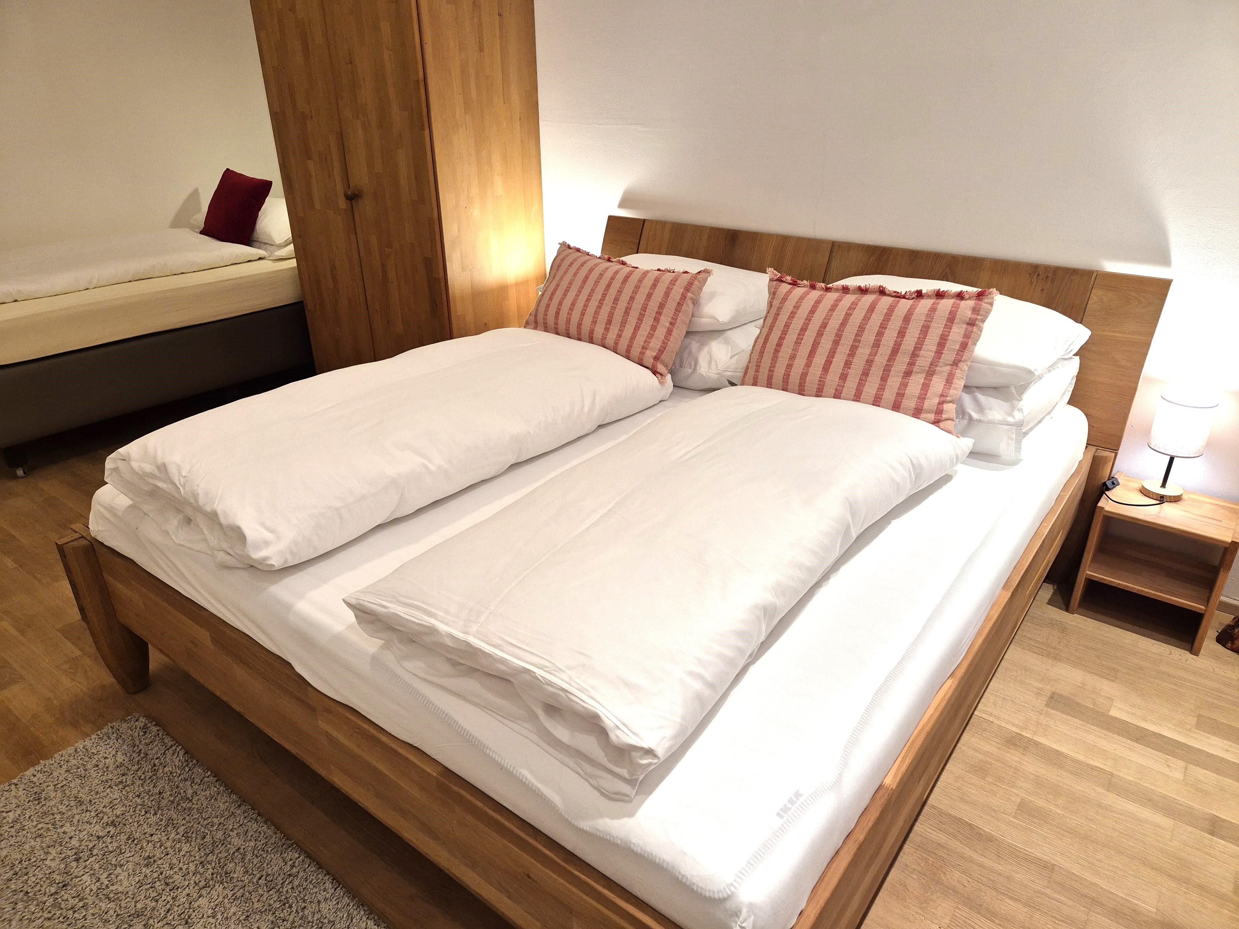 Gemütliches Wohnzimmer mit Küche, Geschirrspüler, Kühlschrank, Mirkowelle, Wasserkocher, Toaster, Kaffeemaschine (Filterautomat und Espressomaschine). Doppelbett im Elternschlafzimmer, Doppelbett im Kinderzimmer mit Zusatzaufbettung für eine weitere Person möglich, geräumige Dusche mit Regenbrause, private Sauna!