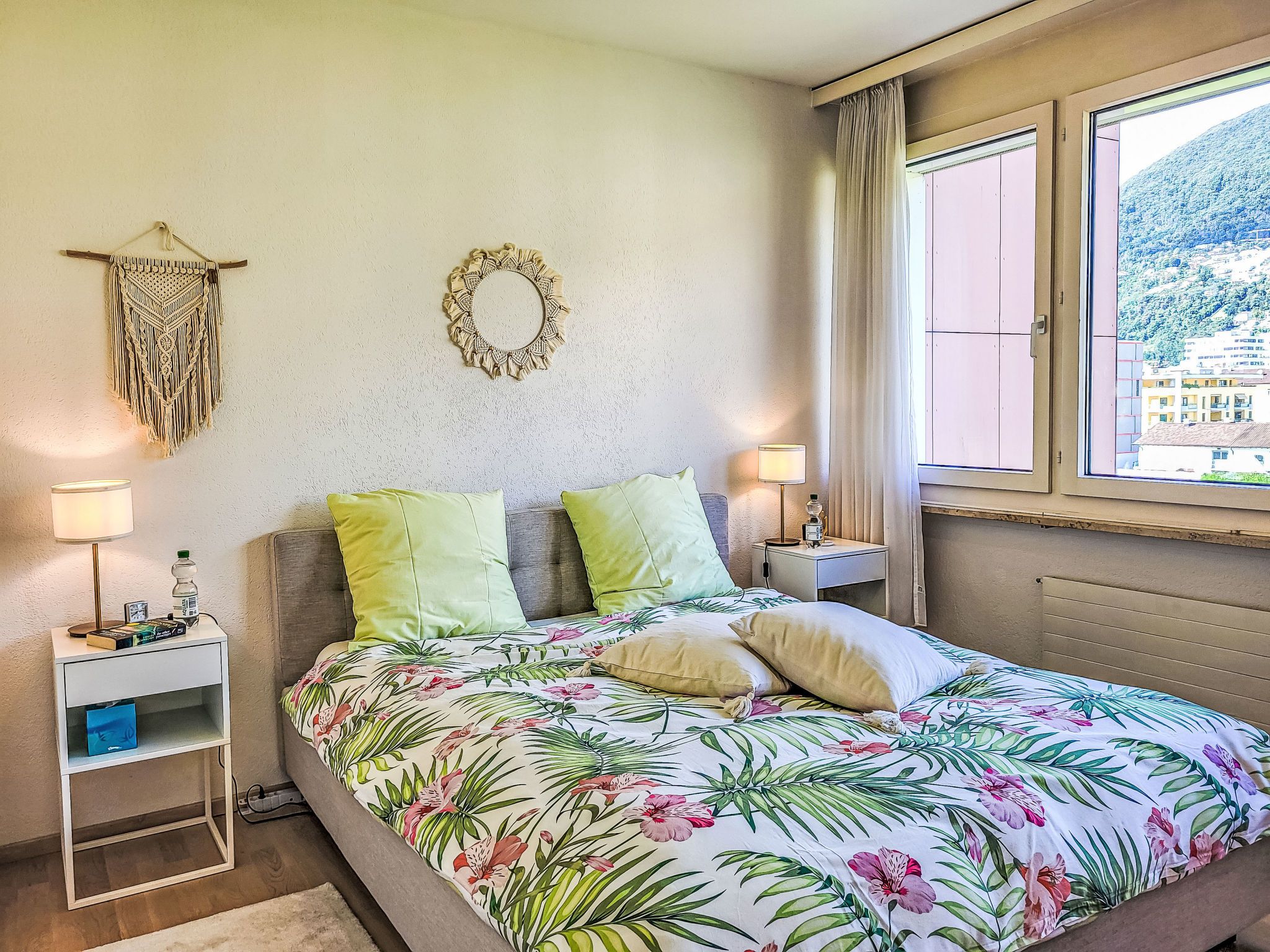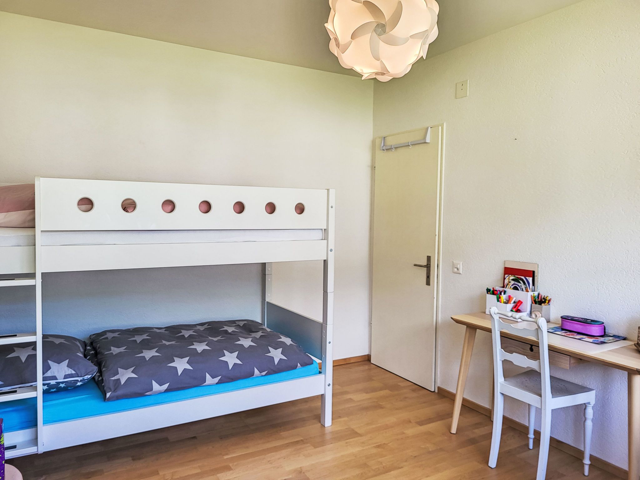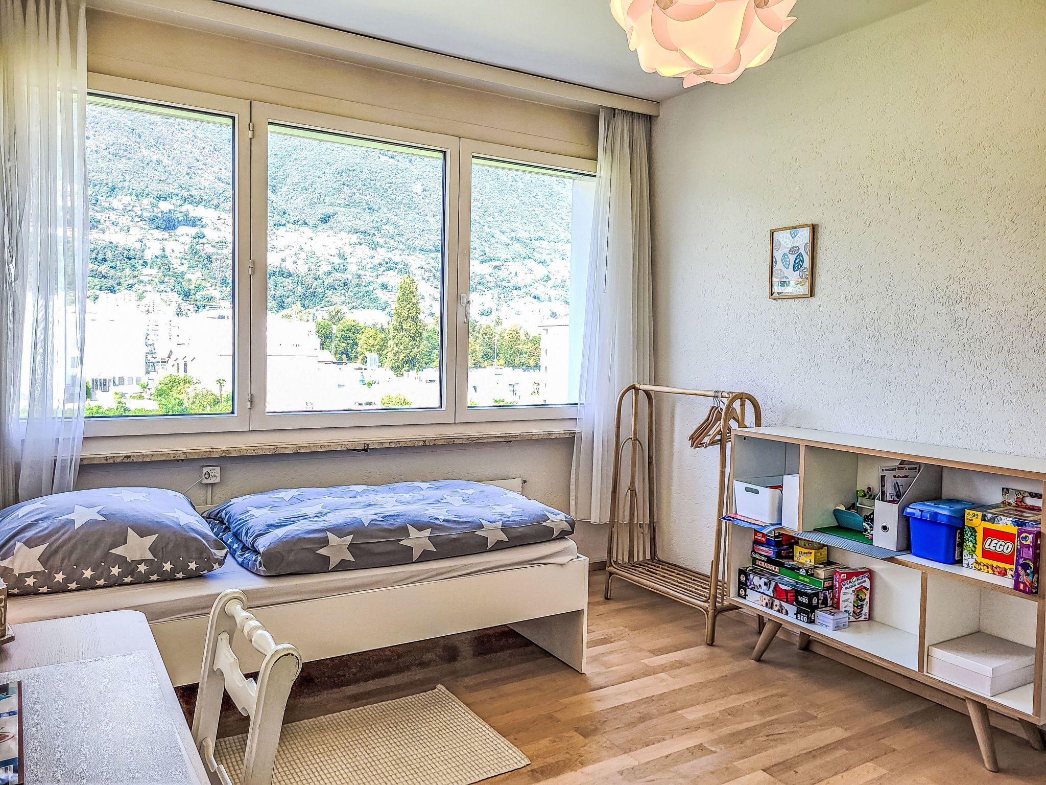Apt.Green View, 3-Zimmer-Wohnung 72 m2 im 4. Stock, Südlage. Objekt geeignet für 3 Erwachsene + 2 Kinder. Hell, schön und modern eingerichtet: Wohn-/Esszimmer mit Internationale TV-Sender und Flachbildschirm. Ausgang zum Balkon, Richtung Süden und Richtung Osten. 1 Doppelzimmer, Richtung Norden mit 1 Doppelbett (1 x 160 cm, Länge 200 cm). 1 grosses Zimmer, Richtung Norden mit 1 Bett (90 cm, Länge 200 cm), 1 x 2 Etagenbetten (90 cm, Länge 200 cm). Offene Küche (Backofen, Geschirrspüler, 4 Glaskeramikplatten, Toaster, Wasserkocher, elektrische Kaffeemaschine, Kapseln für die Kaffeemaschine (Nespresso) extra). Dusche/WC. Fussbodenheizung. Heizung nur verfügbar von 15.10. bis 30.04. Parkettboden. Balkon 8 m2, Südlage und Ostlage. Balkonmöbel. Sehr schöne Panoramasicht auf die Berge, die Landschaft und den Wald. Zur Verfügung: Internet (WLAN, gratis). Parkplatz Nr. 29 (überdacht). Bitte beachten: Nichtraucher-Unterkunft. Maximal 1 kleines Haustier/Hund erlaubt. NL-