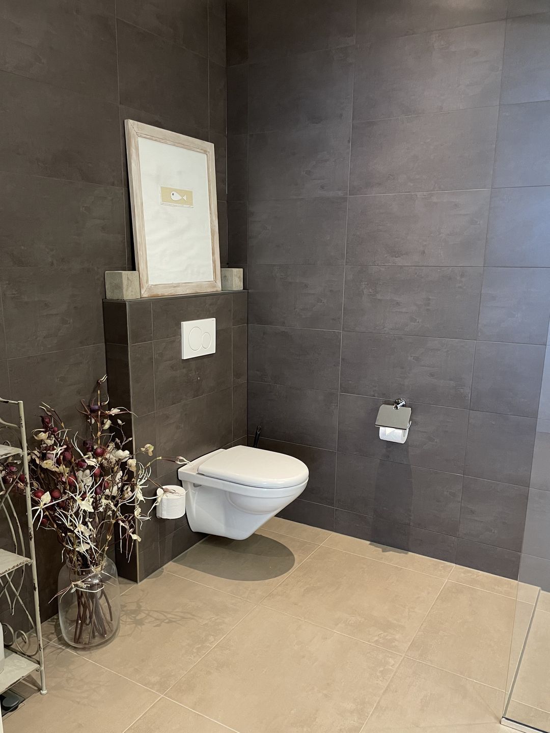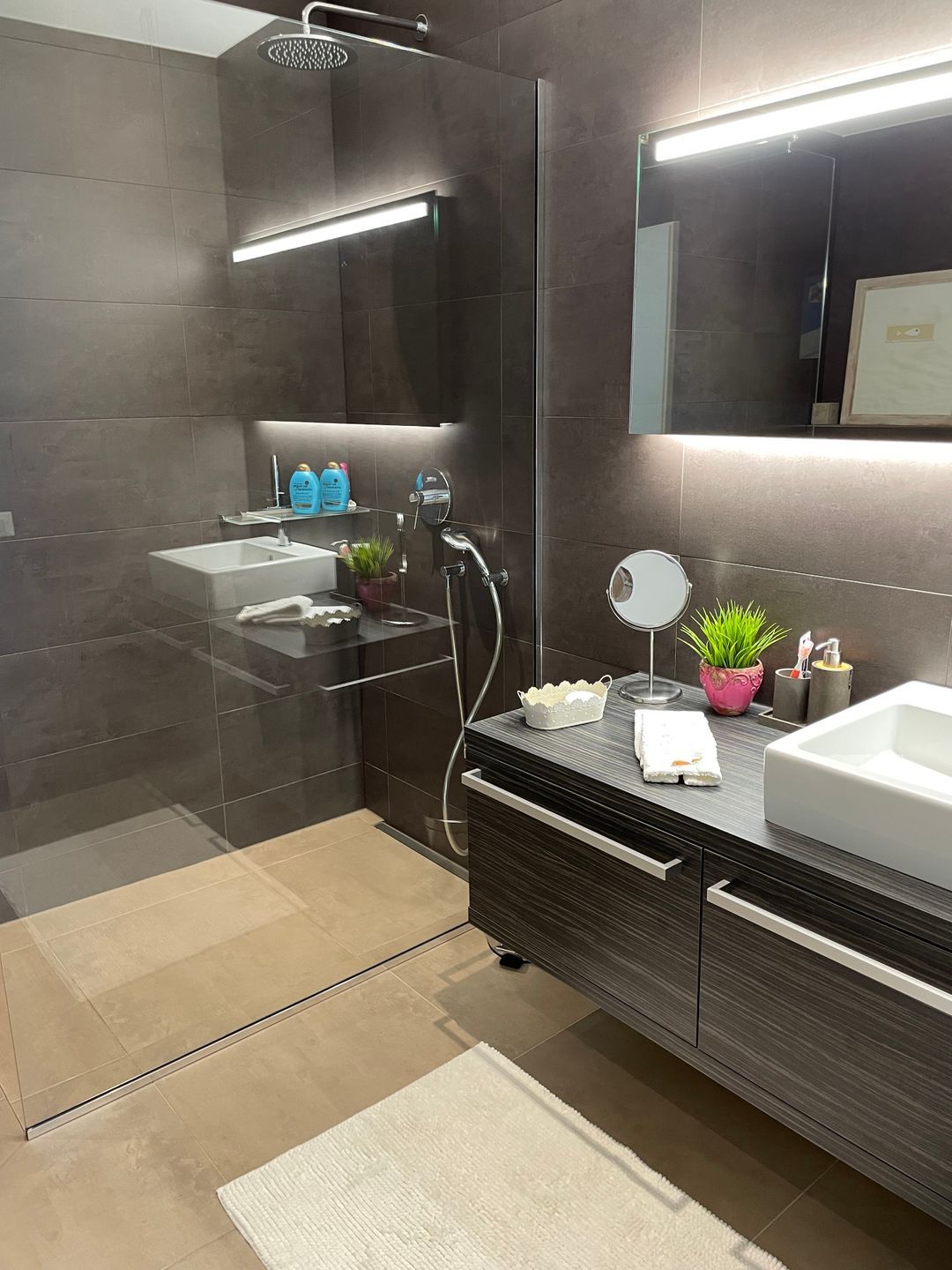 • Badezimmer mit Regendusche und WC, Haartrockner