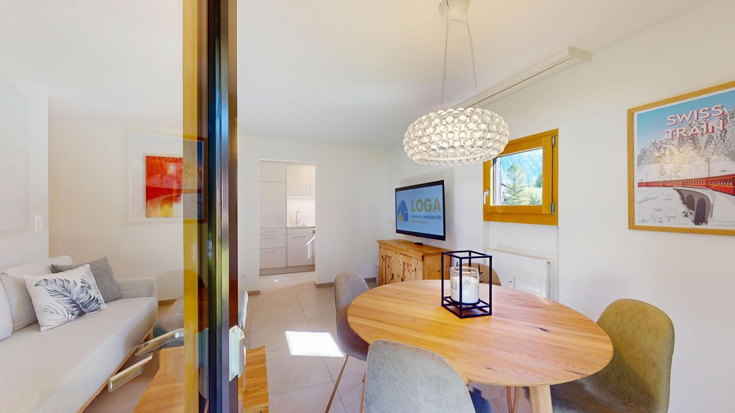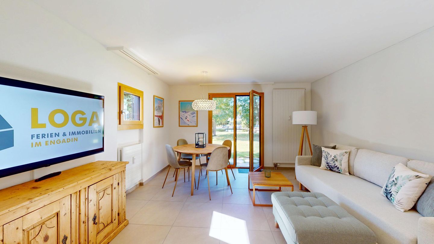 Die Chesa Chamuotsch ist ein Mehrfamilienhaus an ruhiger und sonniger Lage. Etwa 100 m vom Haus entfernt laden im Sommer Tennisplätze und im Winter der Eisplatz zu sportlichen Aktivitäten ein. Der Bahnhof ist ca. 500 m, die Bergbahn Saluver/Marguns ist ca. 700 m entfernt. Diverse Restaurants sowie die Langlaufloipen sind in unmittelbarer Nähe.