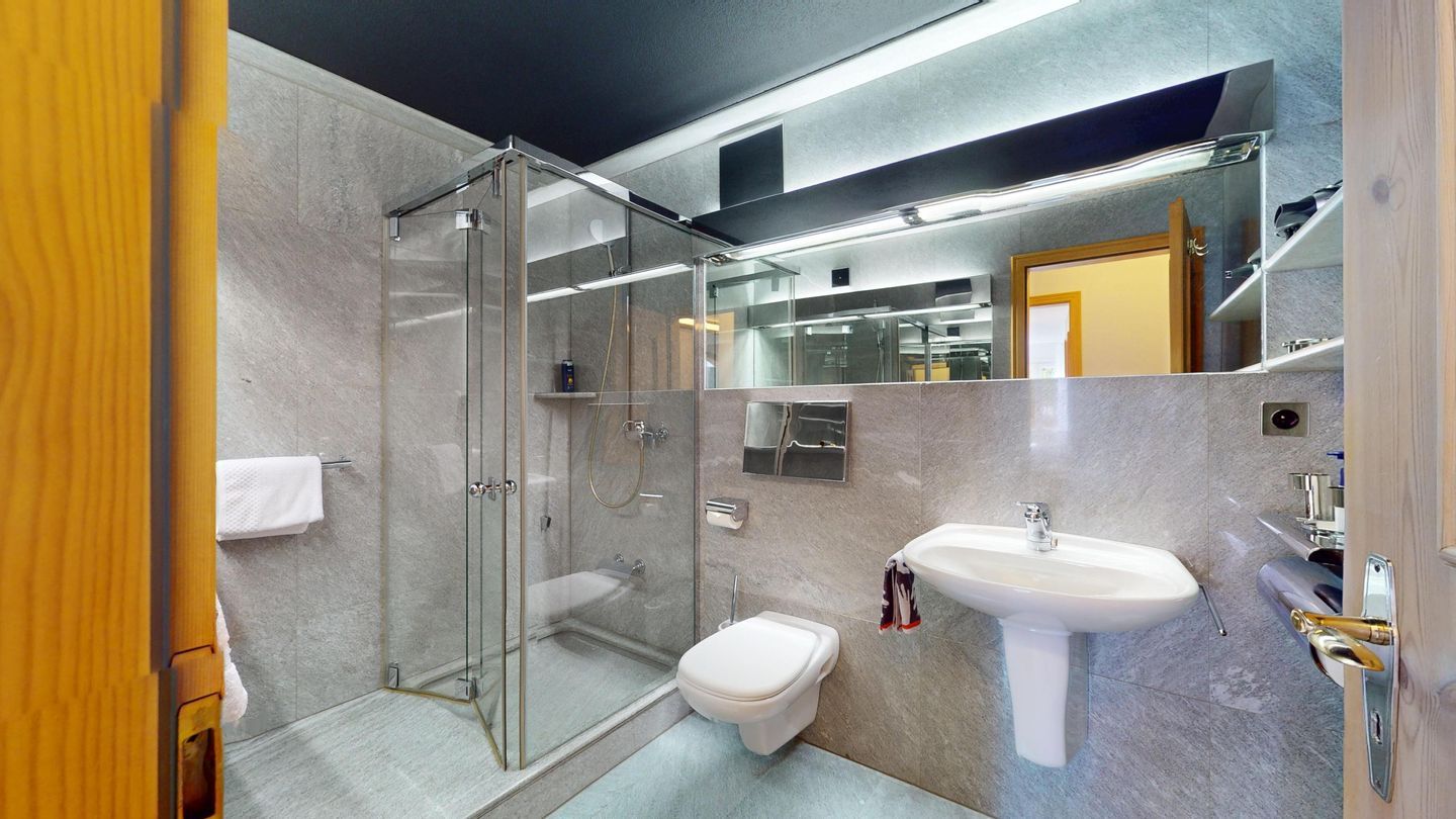 3½ - Zimmerwohnung im Hochparterre. Wohn- und Esszimmer mit Balkon und TV. Küche mit Geschirrspüler und Backofen. Kaffeemaschine Chicco d'Oro. Zwei Doppelzimmer (Doppelbetten mit zwei Matratzen). Zwei Badezimmer: eines mit Dusche/WC/Lavabo, eines mit Badewanne/WC/Lavabo/Bidet. Zwei Garagenplätze. Waschküche und Skiraum zur Mitbenützung. Haustiere sind nicht erlaubt. Der Kamin kann nicht benutzt werden.