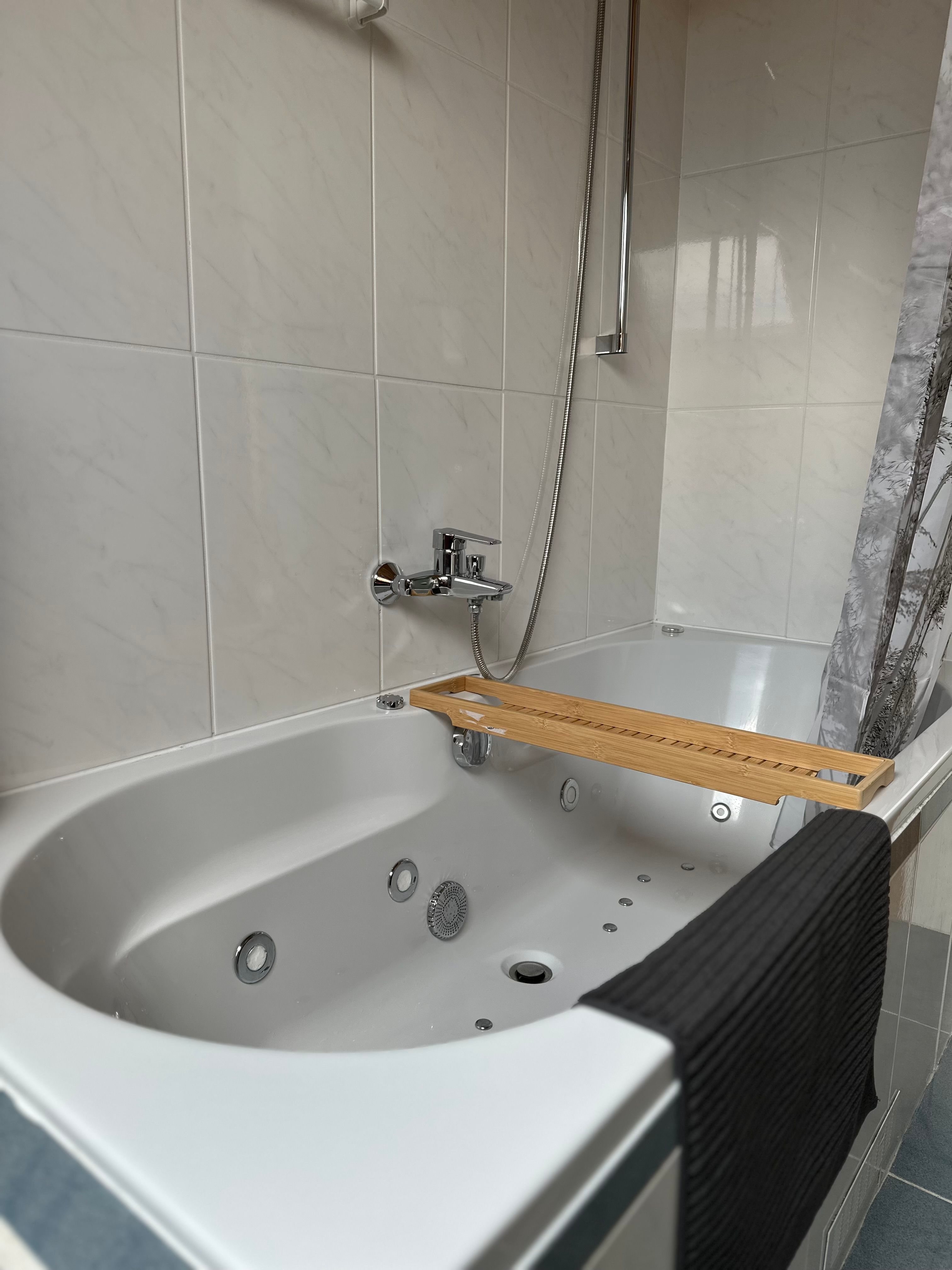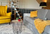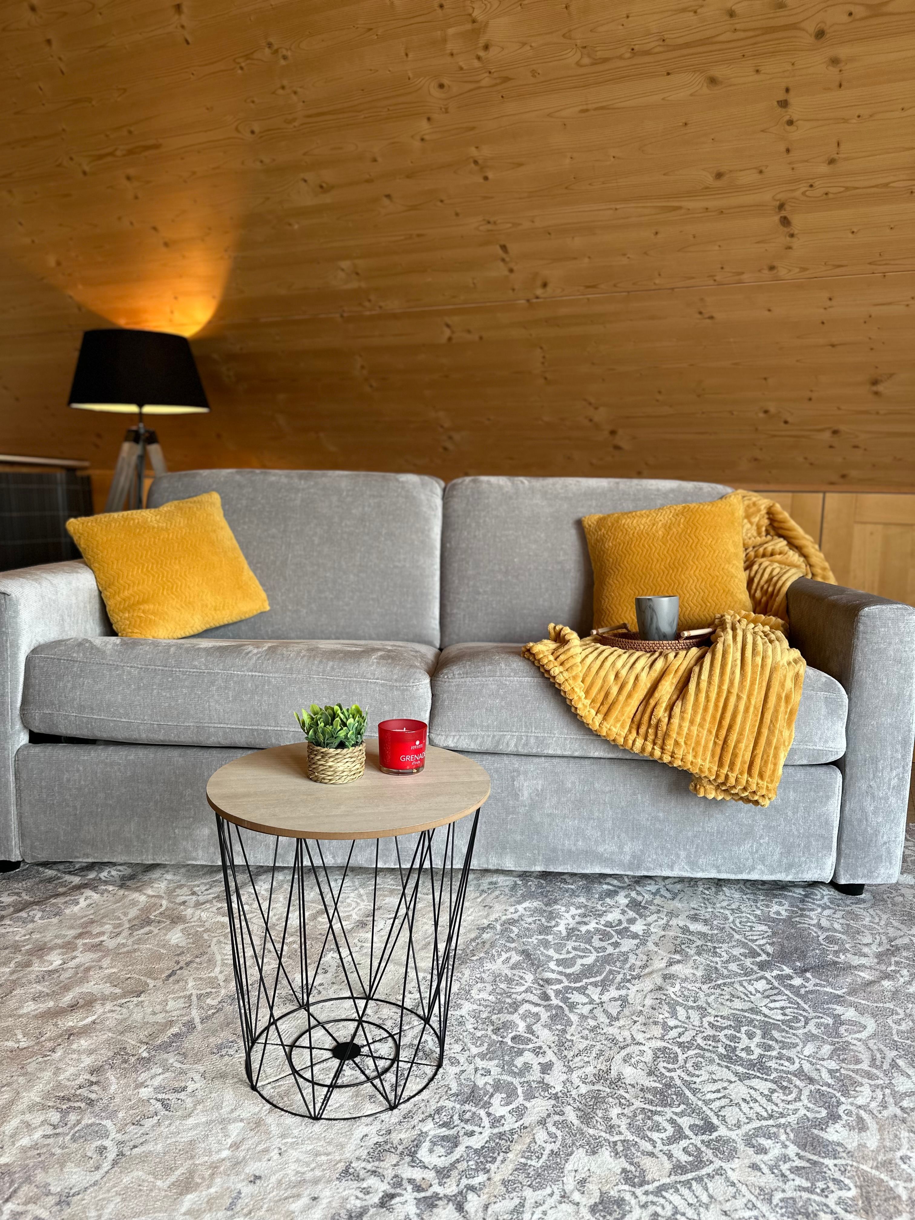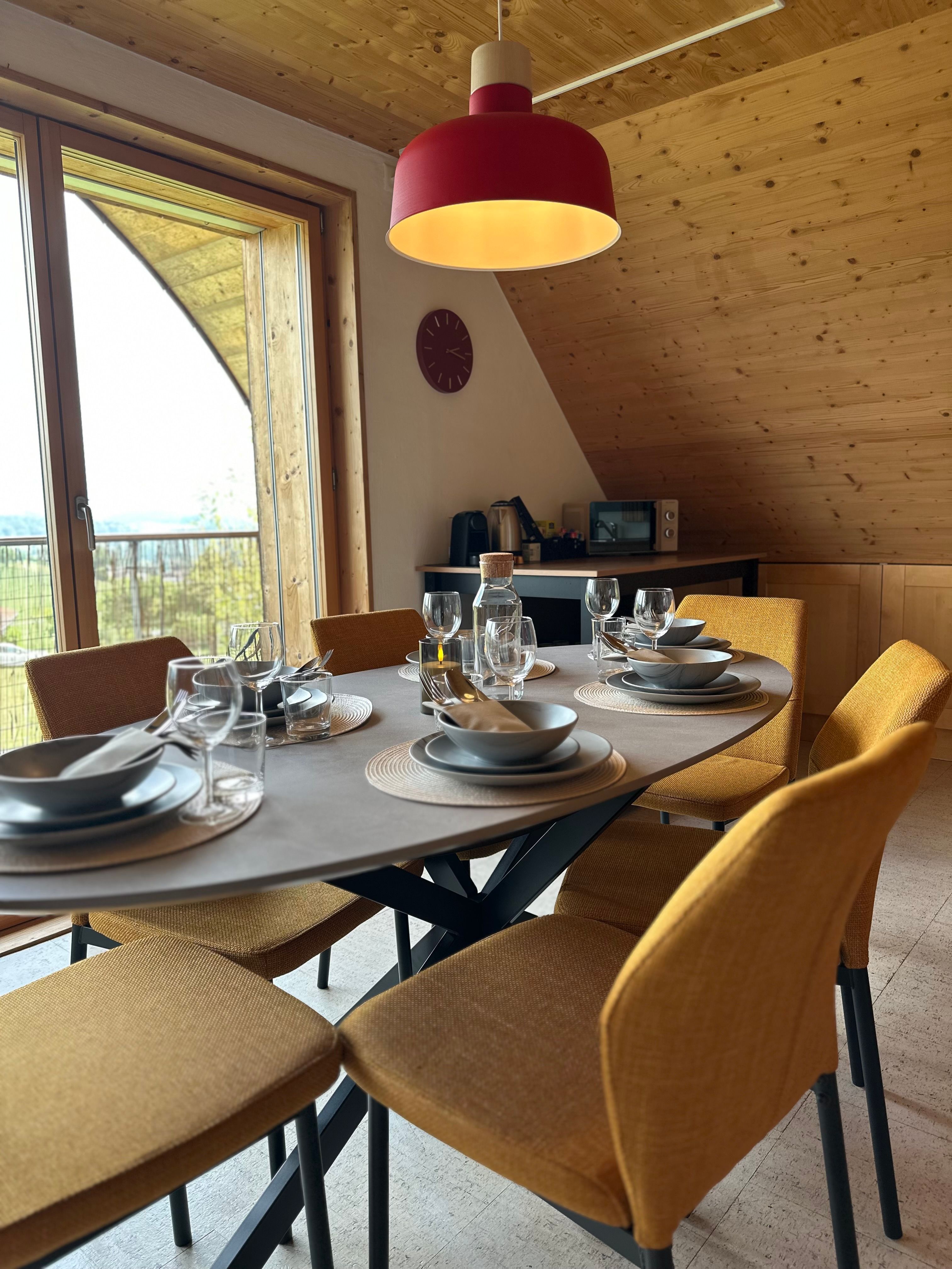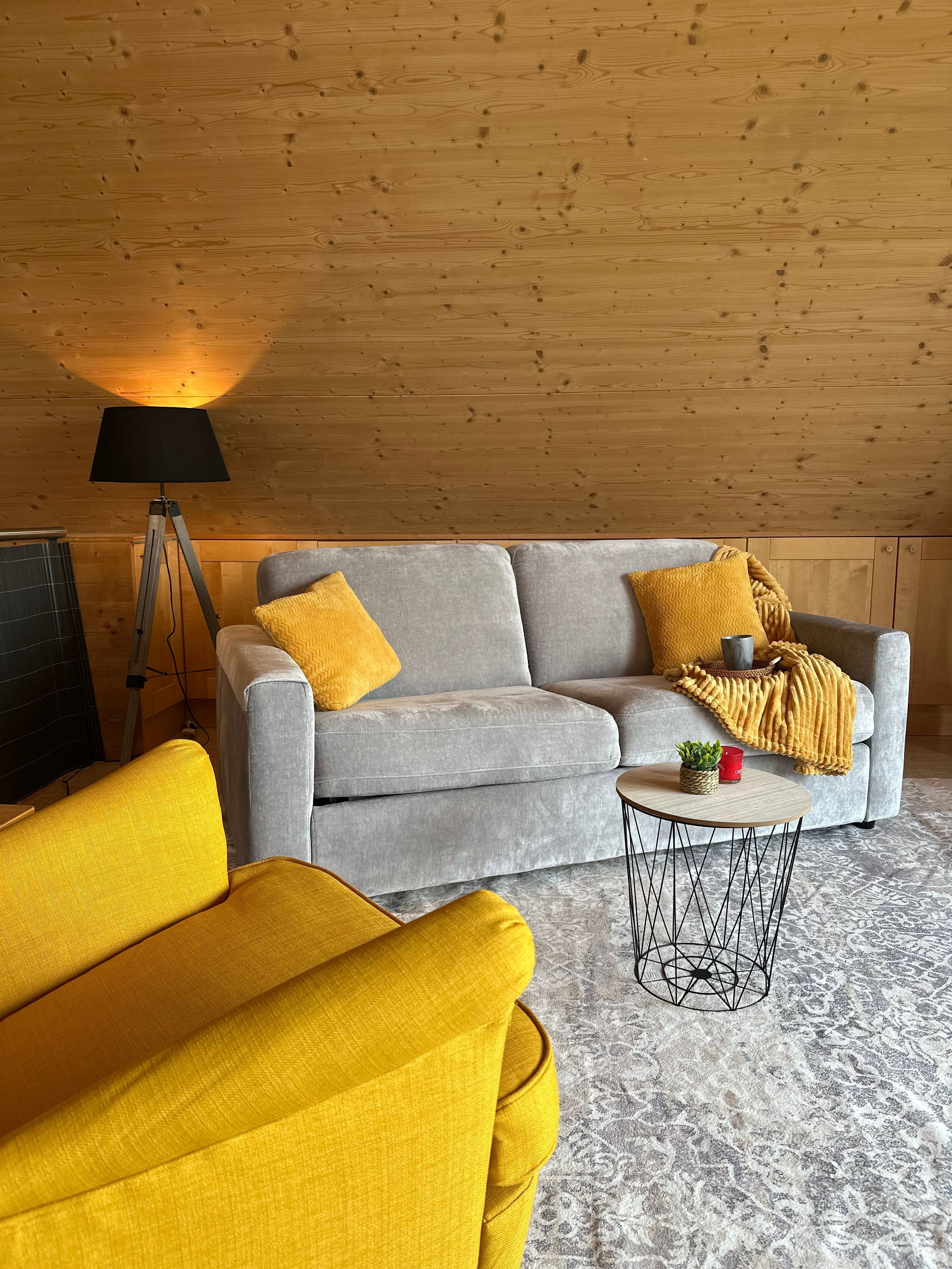 Im Inneren erwarten Sie auf drei Etagen verteilt gemütliche und einladende Räumlichkeiten. Beginnen Sie im unteren Bereich, wo sich ein behagliches Zimmer mit Doppelbett befindet. Eine Etage höher gelangen Sie in den Wohn- und Essbereich, der neben einer Schlafmöglichkeit für zwei weitere Personen auf einem komfortablen Schlafsofa auch einen Esstisch für sechs Personen bietet. Die Küche ist voll ausgestattet und lässt keine Wünsche offen für die Zubereitung köstlicher Mahlzeiten. Über dem Wohnzimmer befindet sich die Galerie, auch hier mit einem komfortablen Doppelbett ausgestattet.