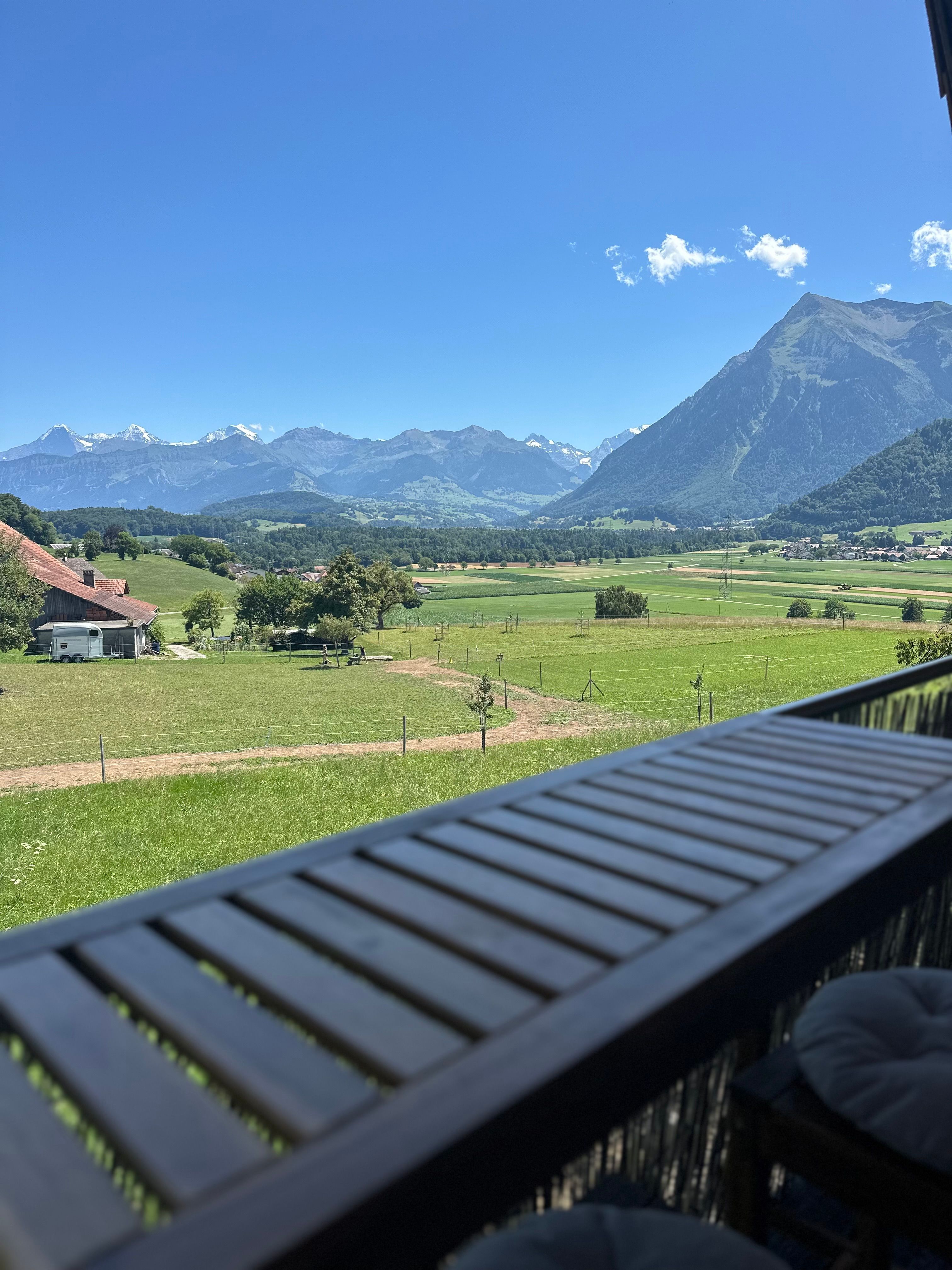 Entdecken Sie Ihr perfektes Urlaubsziel für eine Auszeit vom Alltag: Eine atemberaubende Ferienwohnung mit faszinierendem Bergpanorama, das Sie aus dem Esszimmer und dem Schlafzimmer bewundern können. Die ruhig gelegene Wohnung ist der ideale Ausgangspunkt, um die Umgebung zu erkunden, Wandern zu gehen, Fahrrad zu fahren oder einfach nur die nahegelegenen Highlights wie Interlaken, Thuner See und Spiez zu genießen.