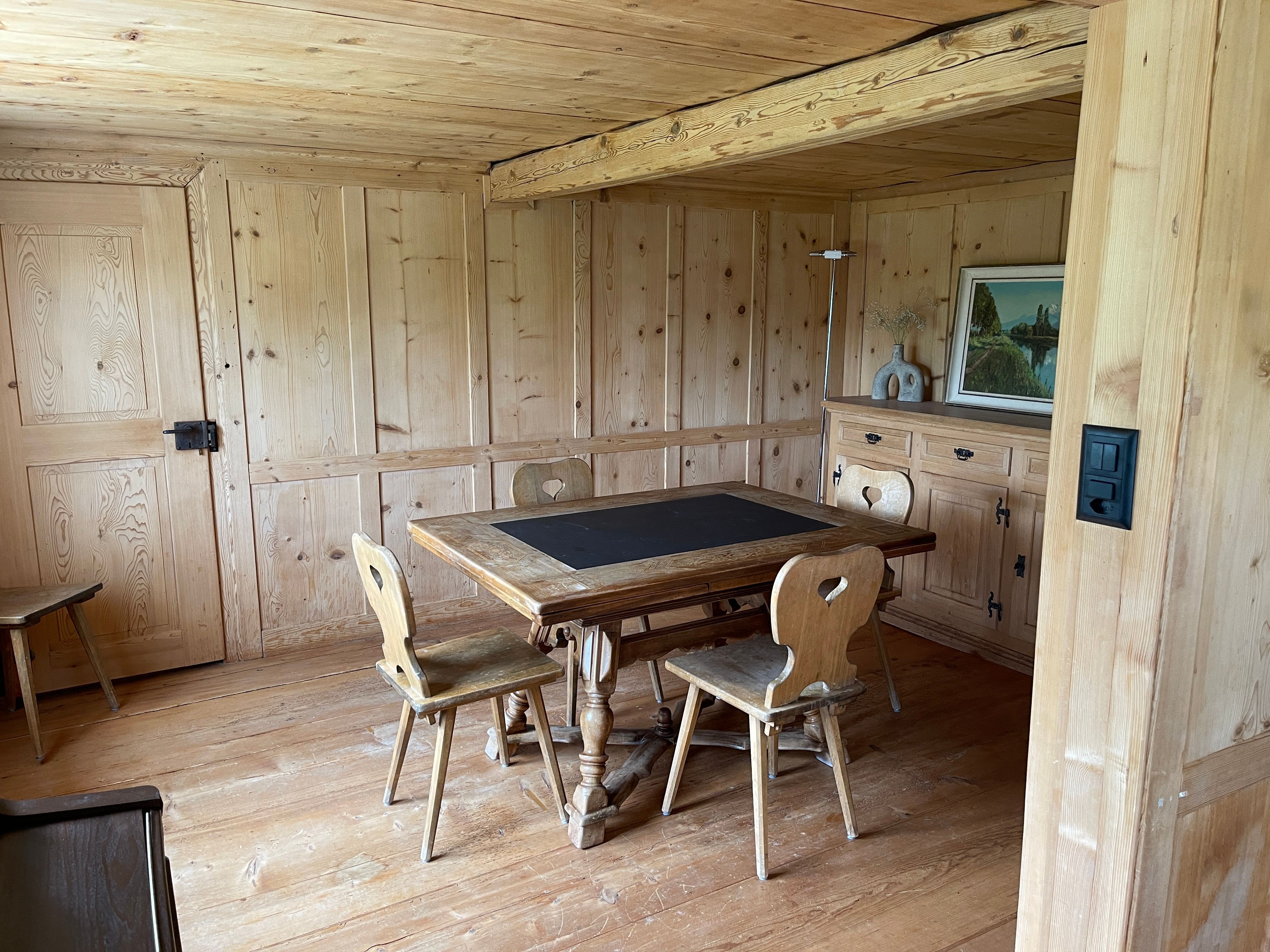 Auf der Südseite des Hauses lädt ein Steintisch zu Mahlzeiten im Freien ein und ermöglicht es Ihnen, die ruhige und sonnige Lage voll auszukosten. Diese kleine Oase ist Teil eines historischen, 300-jährigen typischen Toggenburger Bauernhauses, welches unter Denkmalschutz steht und ein Rauch- sowie Feuerverbot beinhaltet.