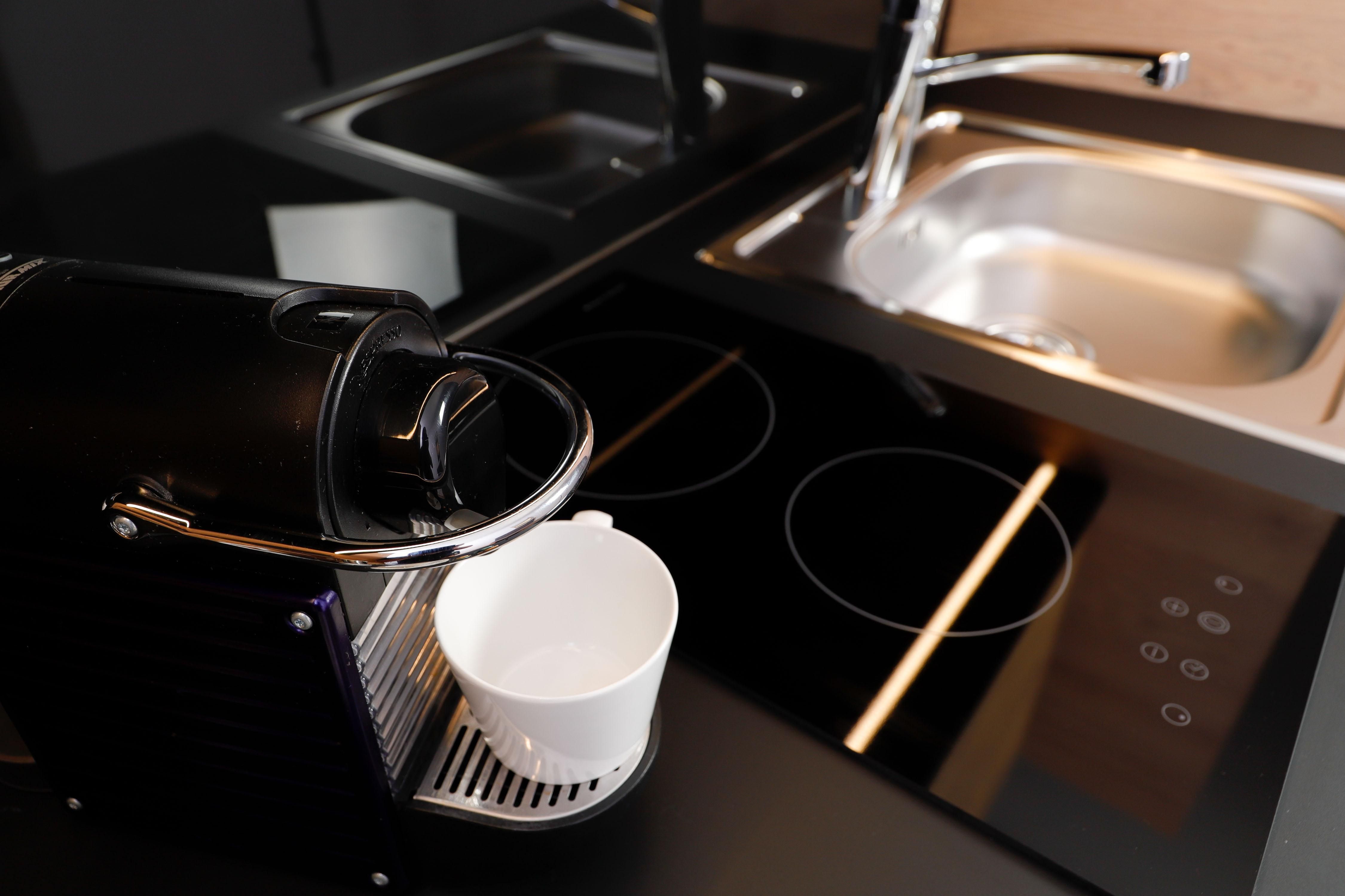 1 Wohn- und Schlafraum, Doppelbett, DU/WC, Schlafcouch, Küchenecke mit 2 Pl.-Kochfeld, Kühlschrank, Geschirrspüler, Espresso Maschine, Wasserkocher, Klimaanlage, TV, Bett- und Frotteewäsche, Wlan