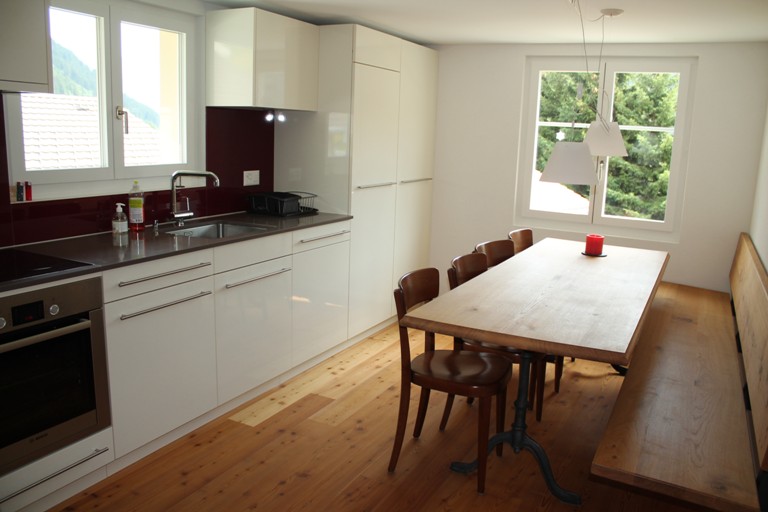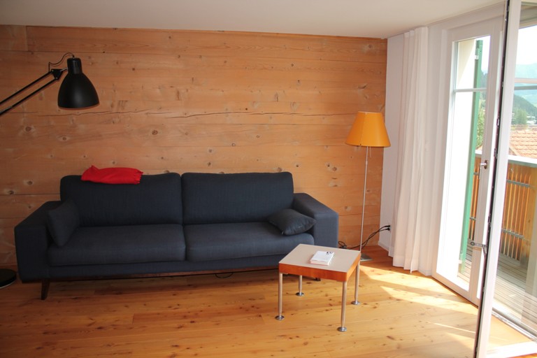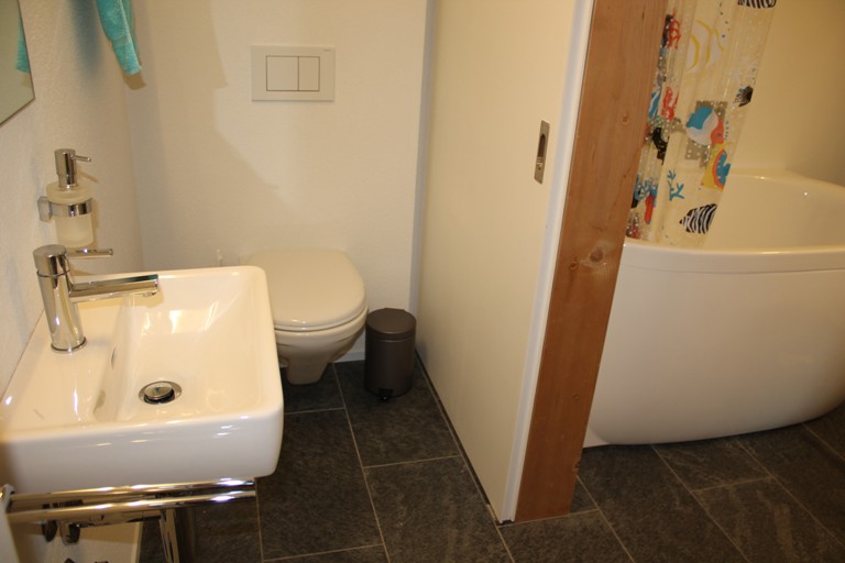 Neumöblierte 4.5-Zimmerwohnung (2015) mit grosser Wohnküche, Wohnzimmer mit Sofaecke und schöner Aussicht, CD/Radio, W-LAN, 2 Doppelbettzimmer und 1 Einzelzimmer. Badezimmer mit Badewanne inkl. Dusche, separates WC. Waschmaschine vorhanden.