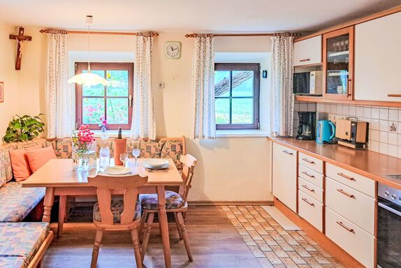 Lindnerhof, 4-Zimmer-Bauernhaus 130 m2. Rustikal und gemütlich eingerichtet: Eingang. Wohn-/Esszimmer. Grosse Küche (4 Kochplatten, Backofen, Geschirrspüler, Wasserkocher, Tiefkühler) mit Essecke. Bad/Dusche/WC. Obergeschoss: 2 Doppelzimmer. 1 Zimmer mit 2 Betten. Holzdielenboden. Schöne Sicht auf die Landschaft. Zur Verfügung: Waschmaschine (extra). Bitte beachten: Nichtraucher-Unterkunft.