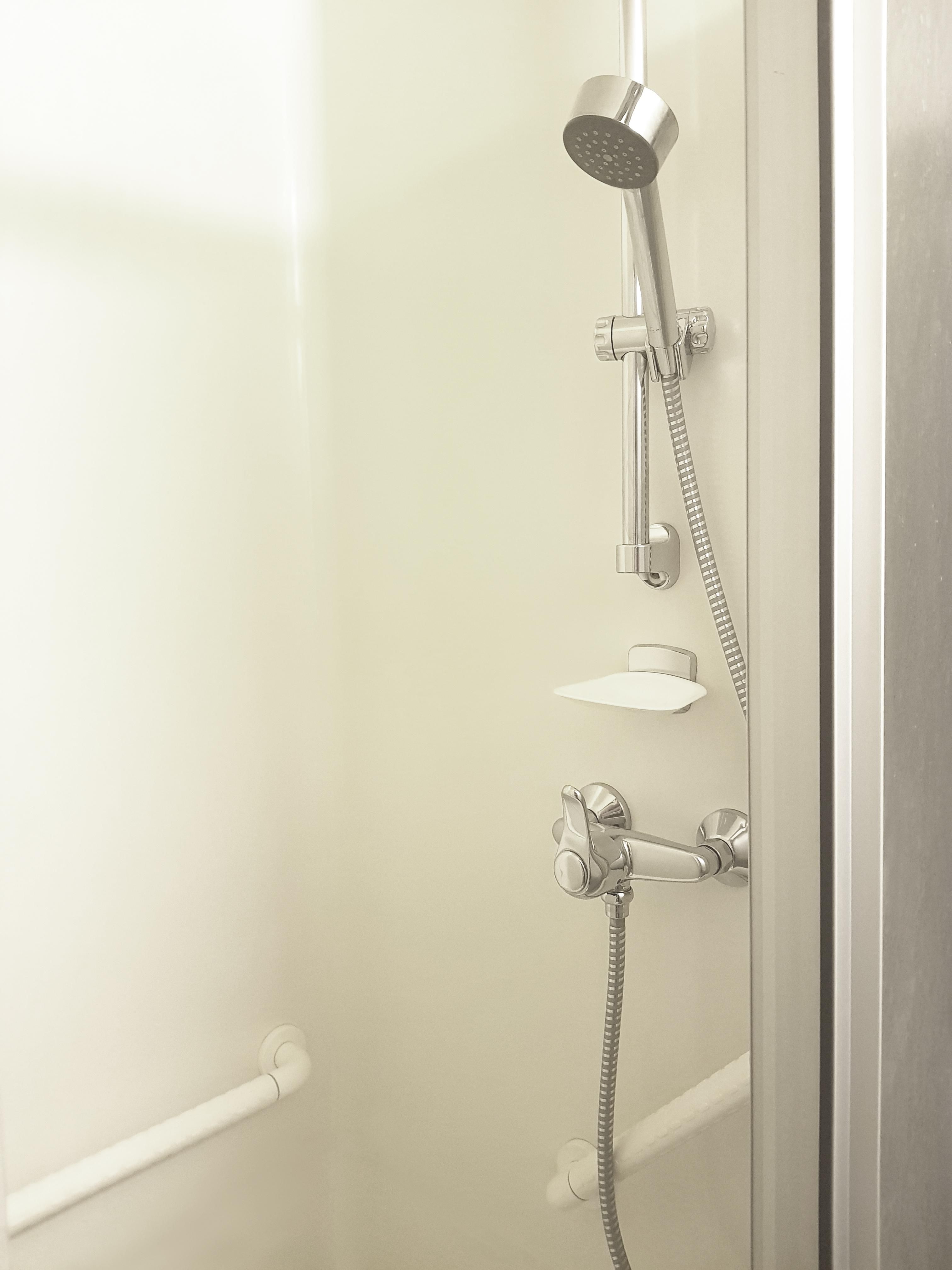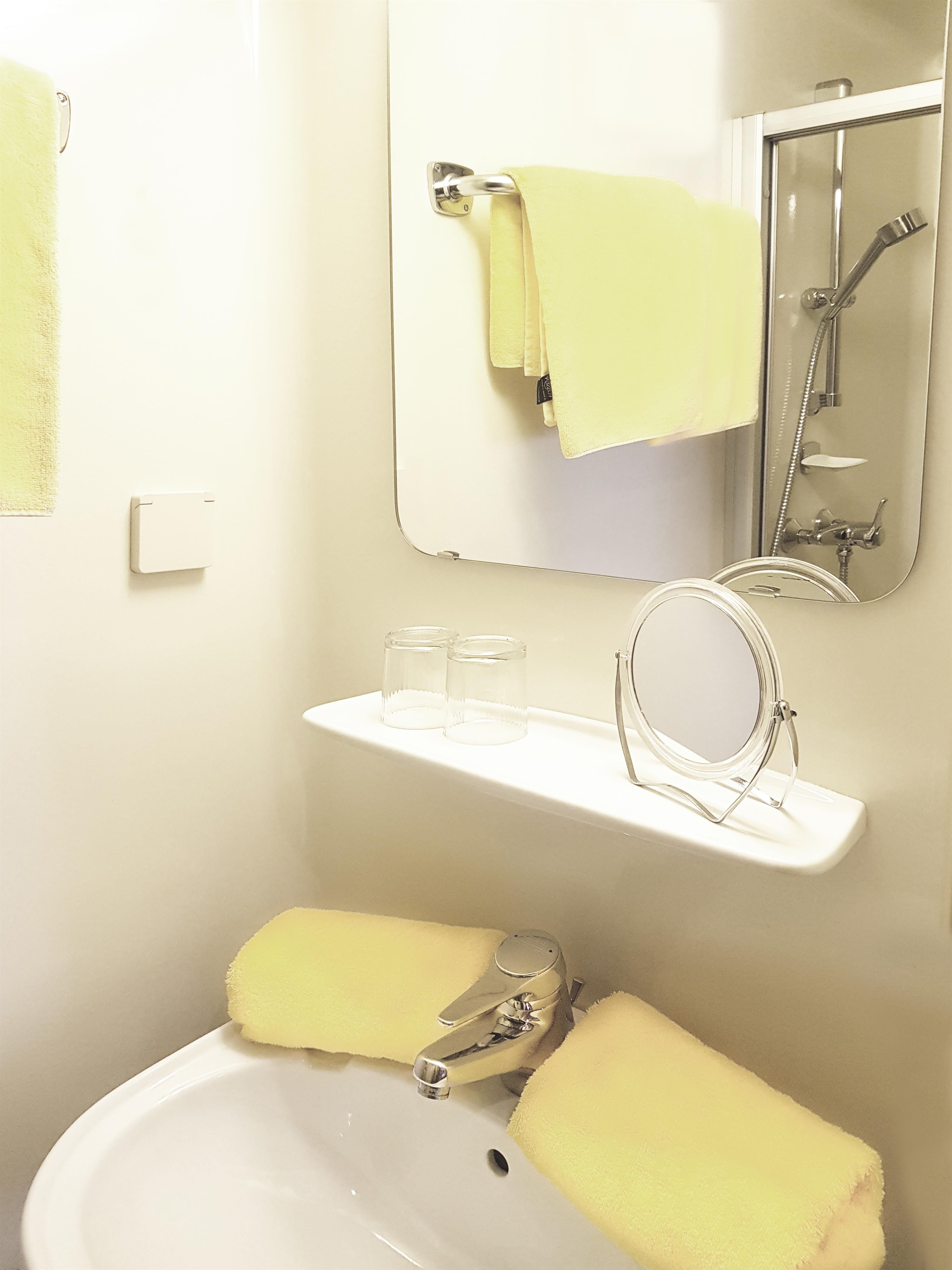 - ein Bad mit Dusche, WC, Waschtisch, Haarfön, Kosmetikspiegel und Handtücher.