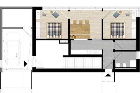 - zwei separate Schlafzimmer mit Doppelbett, Kleiderschrank und Schreibtisch, sowie je einem zusätzlichen Schlafsessel