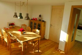Freistehendes Ferienhaus, 2017 renoviert und erweitert. Das Haus im Chaletstil mit viel Holz umfasst 5 Schlafzimmer für bis zu 10 Personen, 2 Badezimmer mit Bad und Dusche, moderne Küche mit Induktionsherd und Geschirrspüler - und vor allem das grosszügige, lichtdurchflutete Wohnzimmer mit grossem Esstisch und dem Kaminfeuer für gemütliche Winterabende. Vor dem Hauseingang - mit Entrée - führt die überdachte Terrasse hinaus in den Garten. Diskret hinter dem Haus befinden sich auf dem Grundtstück mehrere Autoabstellplätze.