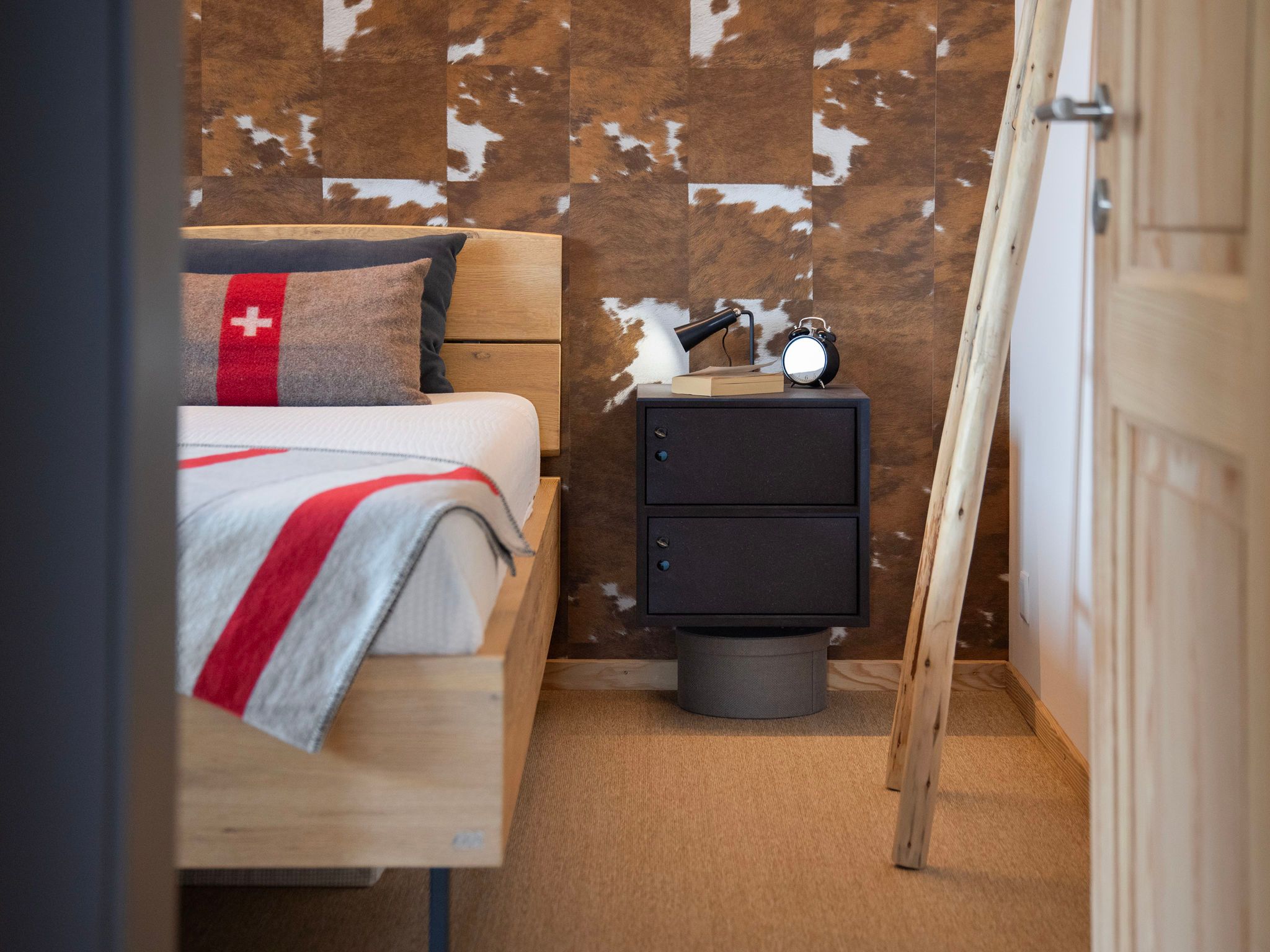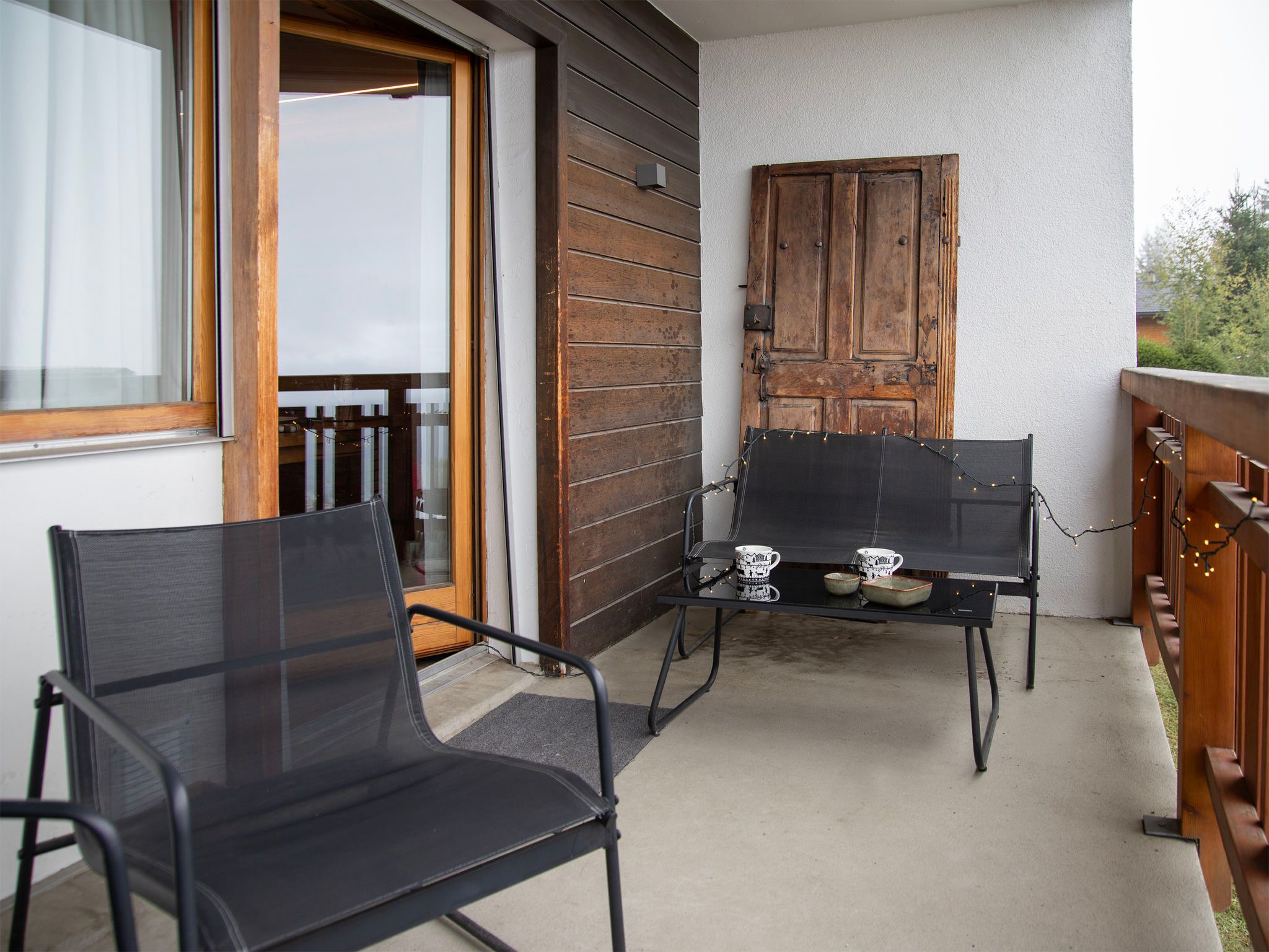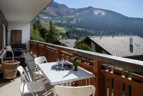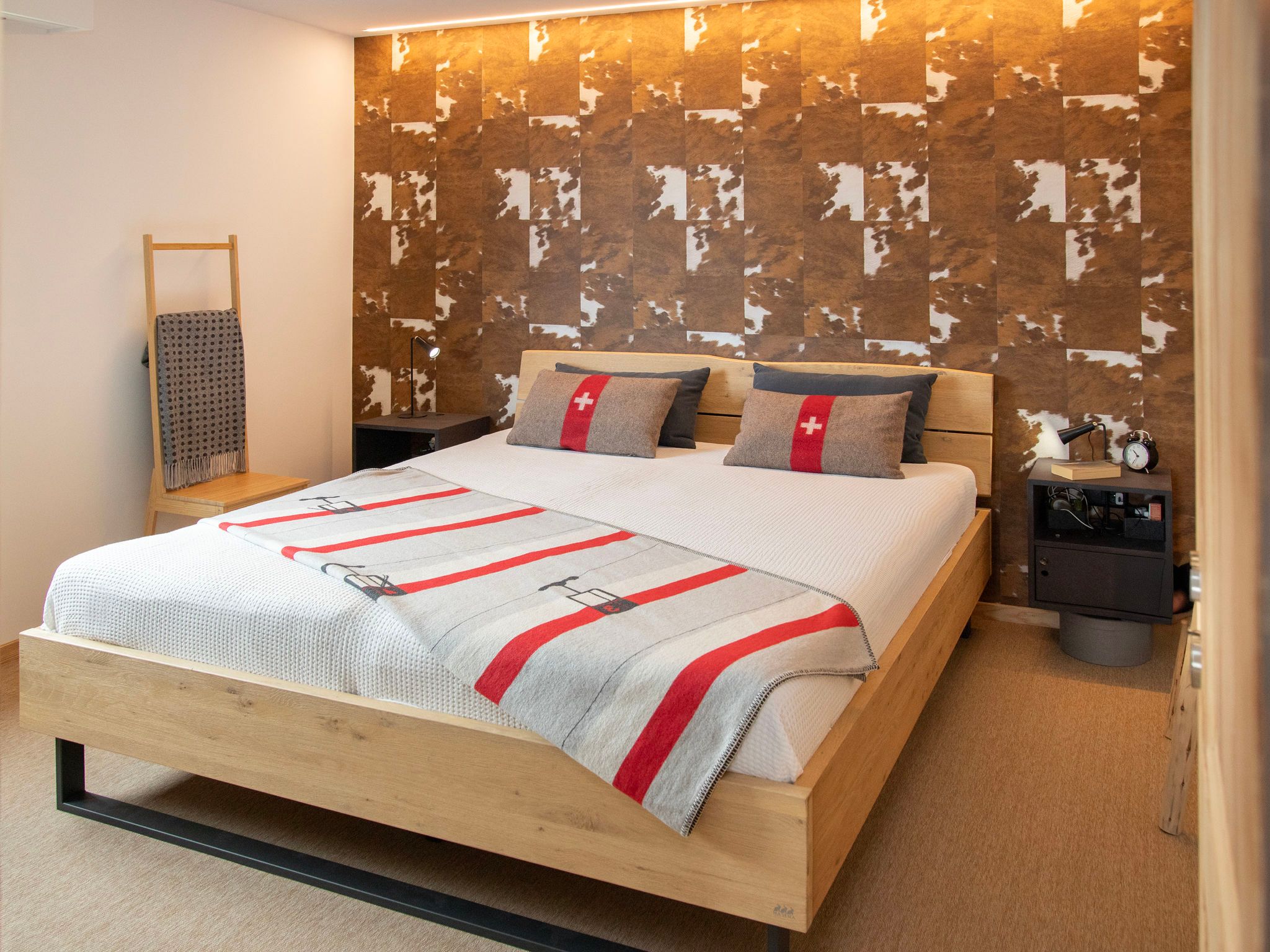 Soleil des Alpes, 3-Zimmer-Wohnung im erhöhten Erdgeschoss, Südlage. Komfortabel und modern eingerichtet: grosses Wohn-/Esszimmer mit Schwedenofen und Kabel-TV. Ausgang zum Balkon, zur Terrasse, Richtung Süden. 1 grosses Zimmer mit 1 Doppelbett (1 x 180 cm, Länge 200 cm), Kabel-TV. Ausgang zur Terrasse. 1 grosses Zimmer mit 2 Betten (90 cm, Länge 200 cm), Kabel-TV. Küche (4 Kochplatten, Backofen, Geschirrspüler, Toaster, Wasserkocher, Mikrowelle, Tiefkühler, elektrische Kaffeemaschine, Kapseln für die Kaffeemaschine (Nespress) extra, Racletteofen, Fondue Set (Käse)). Dusche/WC, sep. WC. Parkettboden. Balkon, Südlage. Balkonmöbel. Sehr schöne Panoramasicht. Zur Verfügung: Haartrockner. Internet (WLAN, gratis). Parkplatz (1 Auto). Bitte beachten: geeignet für Familien. Nichtraucher-Unterkunft.