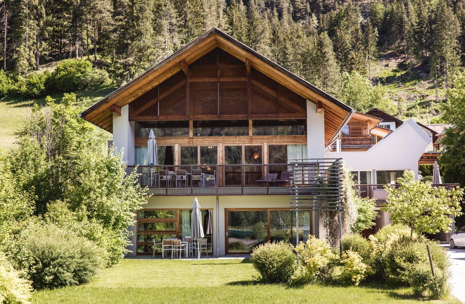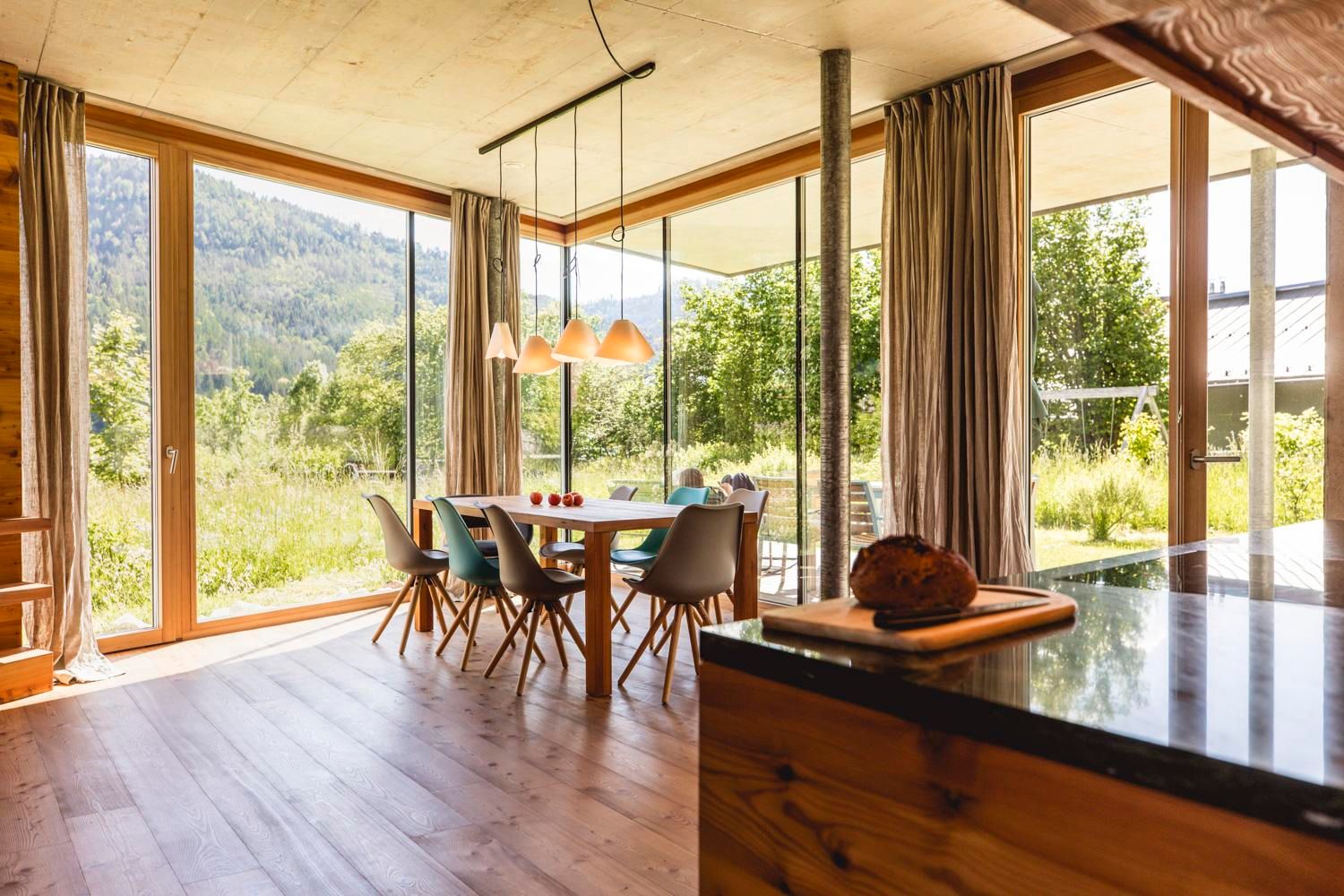 Moderne Architektur, viel Holz, Naturmaterialien und Öfen sorgen für Gemütlichkeit.