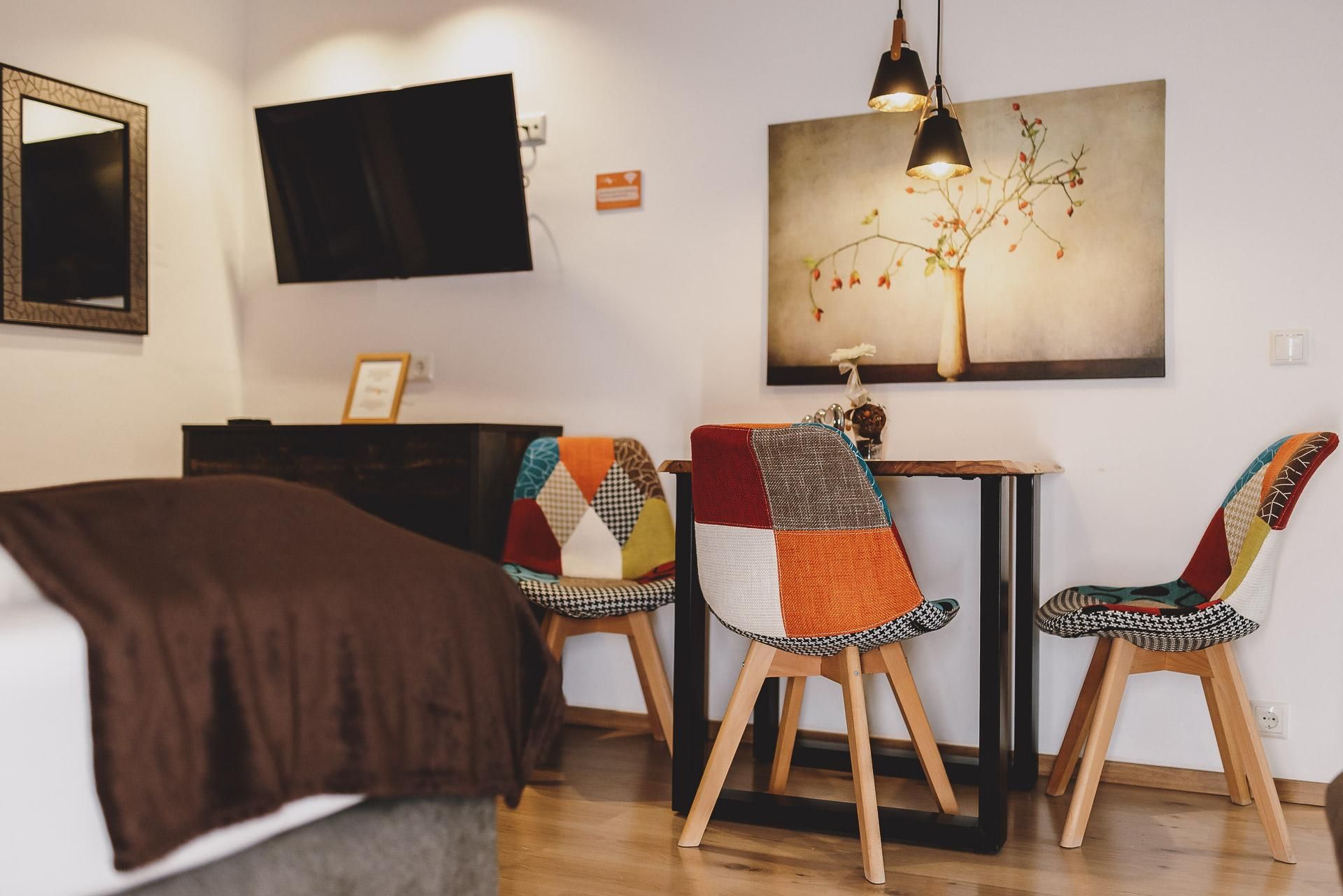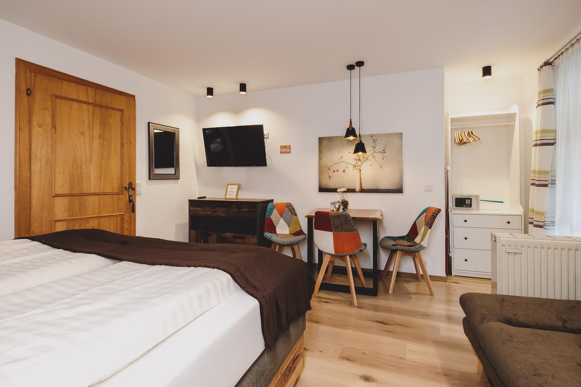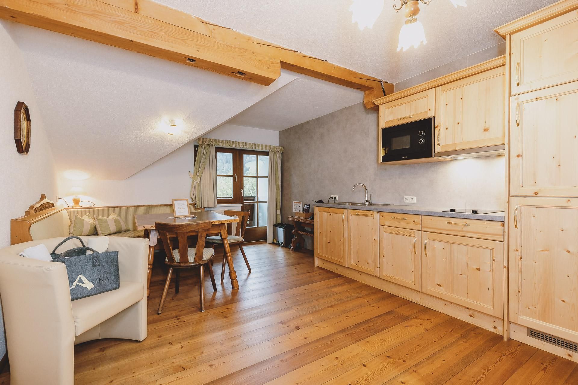 Appartement ca. 45m², mit extra Schlafzimmer für 2-4 Pers. mit Holzdielenboden, Vollholzmöbel, Kabel-TV, Dusche/WC, gemütliche Sitzecke mit Ausziehcouch, Kochnische mit Senseo-Kaffeautomat inkl.Pads, kleine Teeauswahl & Wasserkocher, Balkon/Terrasse