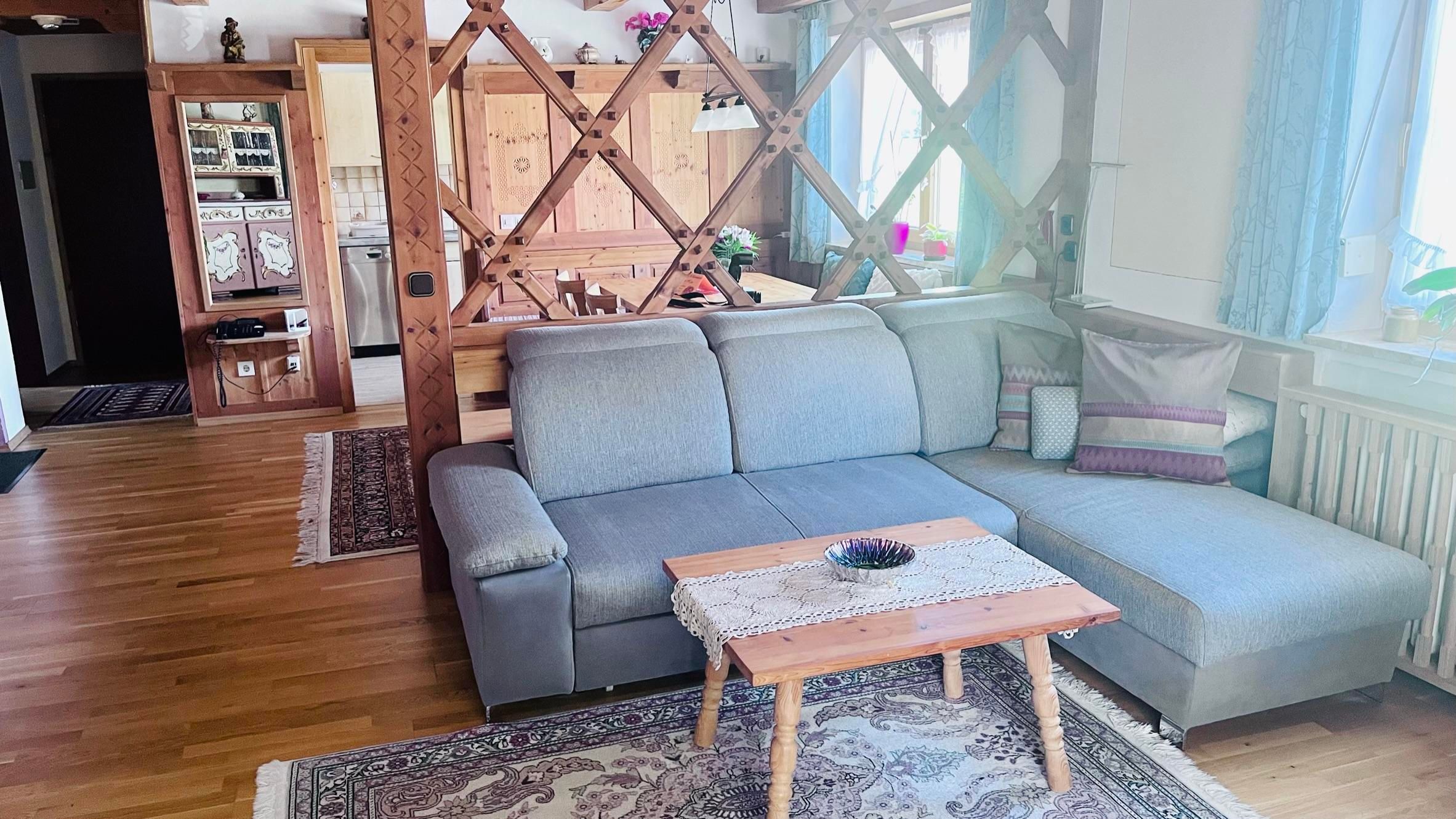 Unsere gemütlich, alpenländlich, eingerichtete Ferienwohnung im 1. Stock mit Blick zum See
