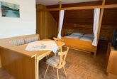 1-Raum Appartement mit Kochnische kombiniert mit Wohn/Schlafraum und Balkon. Sat-TV. Direkte Lage am See.