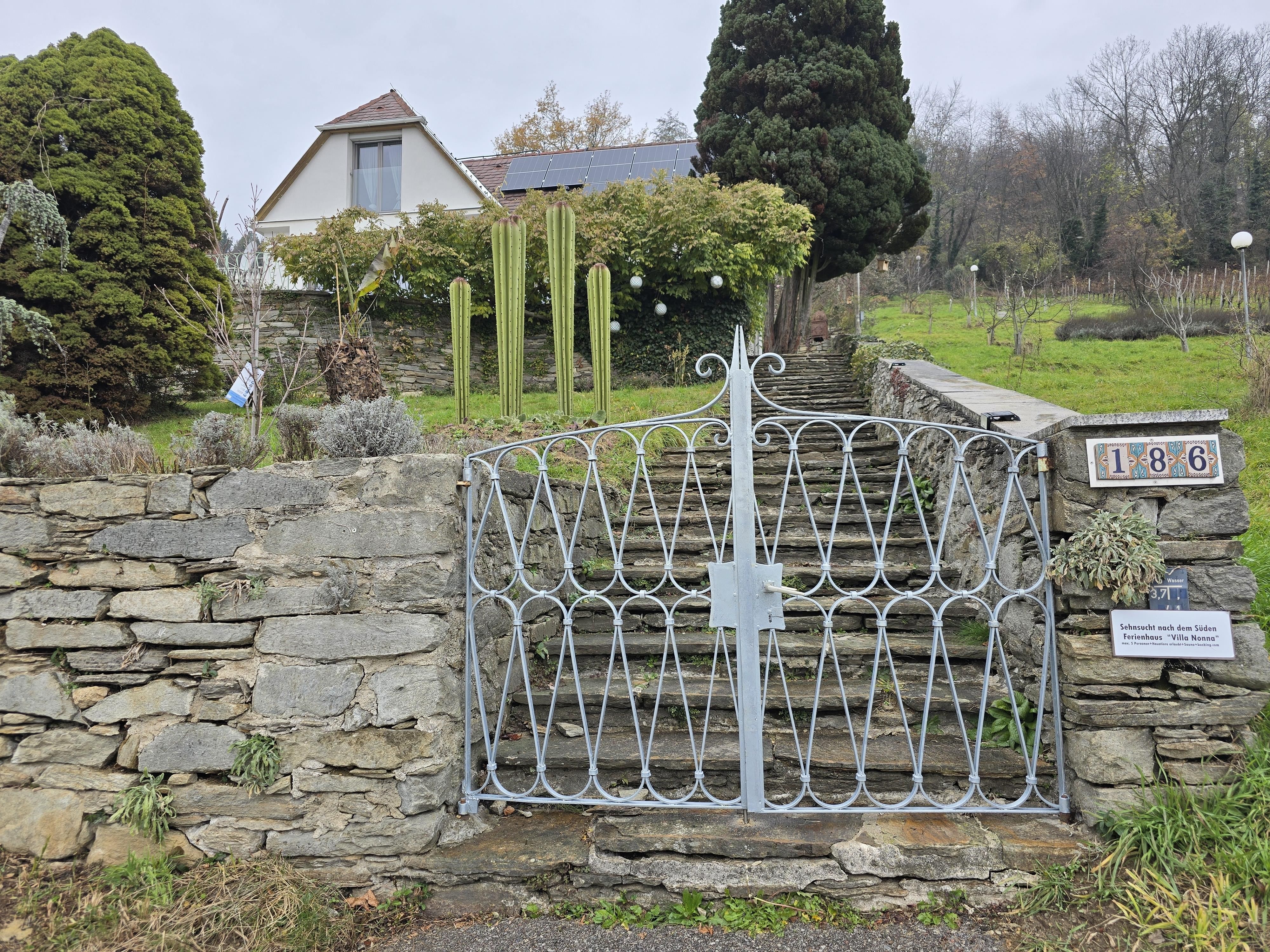 Willkommen in der Villa Nonna - Sehnsucht nach dem Süden. Dieses freistehende Objekt im Grünen ist der perfekte Rückzugsort für Familien, Paare oder kleine Gruppen, die die Schönheit der Oststeiermark entdecken möchten. Sie blicken über die Altstadt Hartbergs hinaus auf einen Weingarten und haben direkten Zugang zum Wanderweg auf die Ringwarte. Sie haben auch einen großen gemütlichen Garten inklusive Fasssauna, Griller und Gartendusche.