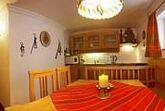 Im EG befindet sich der Hauseingang mit einem sehr großen Vorraum. Von dort gelangt man zu den beiden Schlafzimmern, wobei eines ein Doppelbett mit Sitzecke und SAT-TV hat und das andere 2 Etagenbetten (f. 4 Pers.). Vor diesem Zimmer ist ein Badezimmer mit WC. Vom Vorraum gelangt man auch zum Stiegenabgang, wo man einerseits auf eine der beiden windgeschützten Sonnenterrassen kommt und andererseits hinunter zur Stube, Wohnzimmer, WC, Dusche, Infrarotkabine und zur 2. Terrasse (Sonnenliegen und Sitzgelegenheit). Die Stube verfügt über eine voll ausgestattete Küche (Geschirrspüler, NESPRESSO Kaffeemaschine,...), und eine gemütliche Essecke, wo man dem Feuer im Kachelofen zusehen kann. Gleich neben der Stube ist durch einen Bogen und dem Kachelofen getrennt das Wohnzimmer mit einer großzügigen Wohnlandschaft, SAT-TV, DVD-Player, Radio, Bücher und div. Brettspiele. Bevor man in die Stube kommt, kann man auch zum WC, Dusche und zur Infrarotkabine gehen. Gleich nach dem Schwitzen kann man ins Freie auf die Terrasse gehen. Die Terrasse verfügt über Sonnenliegen, Gartengarnitur und Griller. Das Auto können Sie direkt beim Haus parken.