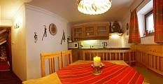 Ein großer Vorraum mit Sitzgelegenheit und ausreichend Stauraum, ein großzügiges Schlafzimmer mit Doppelbett, gemütliche Sitzecke und SAT-TV, ein Schlafzimmer mit 2 Etagenbetten (für 4 Personen), ein Badezimmer mit WC, eine Stube mit voll ausgestatteter Küche (Geschirrspüler,...) das daneben gelegene Wohnzimmer mit gemütlicher Wohnlandschaft (ausziehbar), SAT-TV, Telefon, Radio mit CD und Kassette und diverse Brettspiele. Der leicht bedienbare Kachelofen mit Absperrautomatik bietet wohlige Wärme. Auch ein Wellnessbereich mit Inrarotkabine, Dusche und WC, sowie eine Waschmaschine machen die Hütte komplett.
