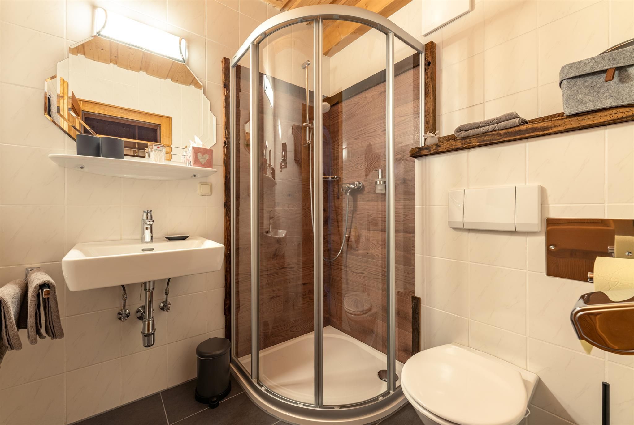 Richtig gut ausschlafen können Sie im großen Schlafzimmer mit Doppelbett. Stauraum gibt es im begehbaren Schrank sowie in einem großen Kasten im Schlafzimmer. Direkt vom Schlafzimmer gelangt man in das neu gestaltete Badezimmer.