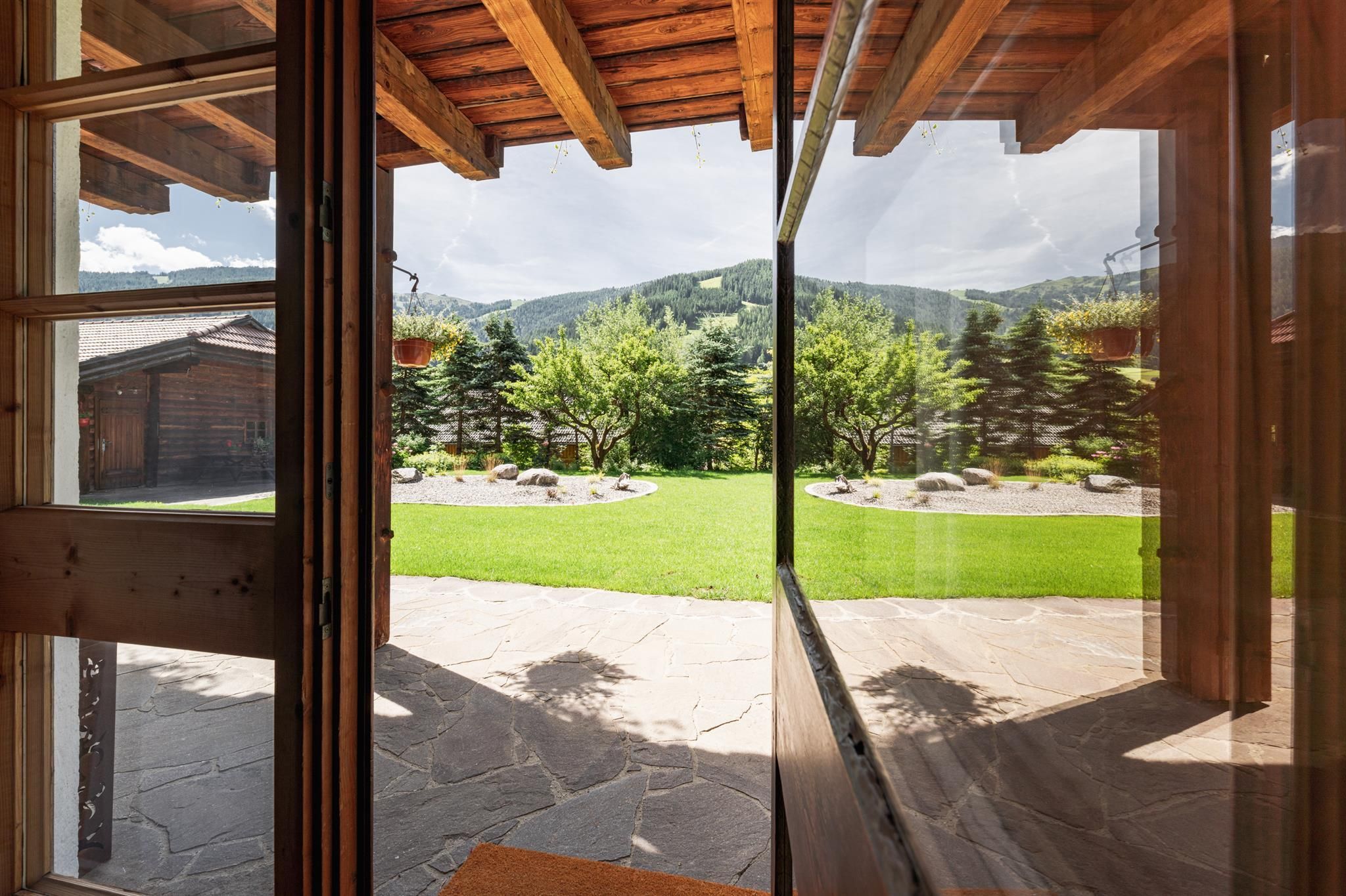Vom Wohnzimmer geht es über die Terrasse direkt in den Garten.