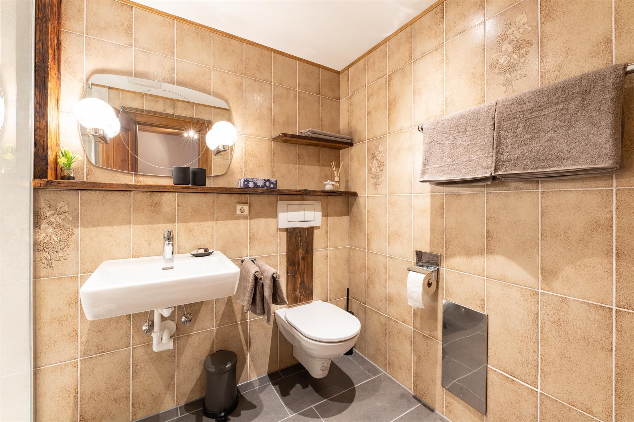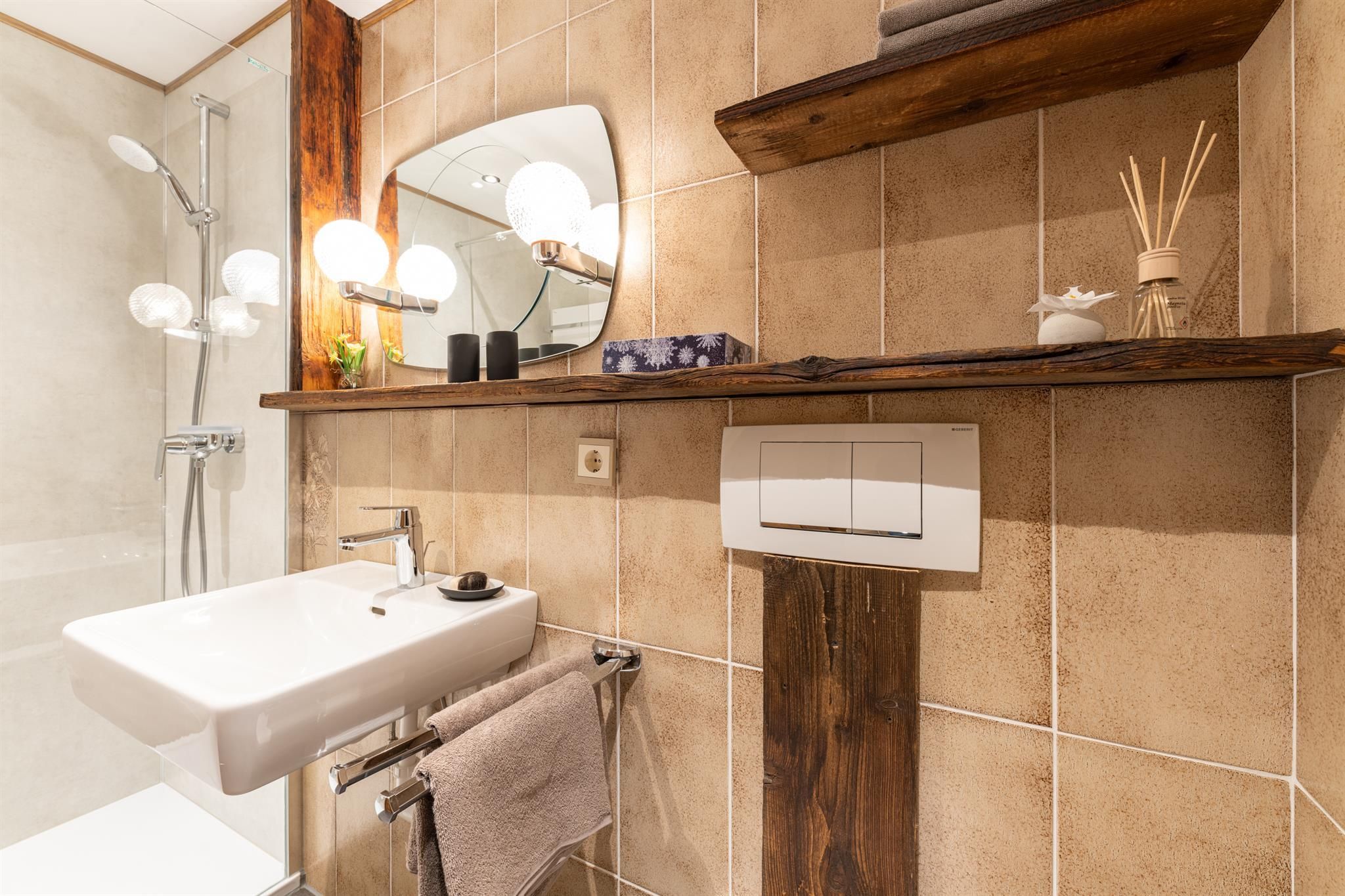 Appartement Ost Es erwartet Sie auf 60m2 ein außergewöhnlich gemütliches Appartement mit direktem Gartenzugang. Um zu viert den Urlaub richtig genießen zu können, gibt es zwei getrennte Badezimmer, die mit vielen individuellen Ideen gestaltet sind. Für einen guten Schlaf gibt es ein Schlafzimmer mit Doppelbett und einem großzügigen Kasten, sowie eine sehr komfortable Schlafcouch im Wohnzimmer zum Ausziehen. Auch hier ist genug Platz für Ihre Kleidung. Die Küche bietet alles an um auch einmal einen Abend zu Kochen oder auch zu Frühstücken. Die Ausstattung der Küche beinhaltet ein 2 Platten Ceranfeld, Kühlschrank, Geschirrspüler, Spüle, Nespresso Kaffeemaschine, Wasserkocher sowie ausreichend Geschirr. Um den Tag ausklingen zu lassen lädt der Essbereich im Wohnzimmer ein.
