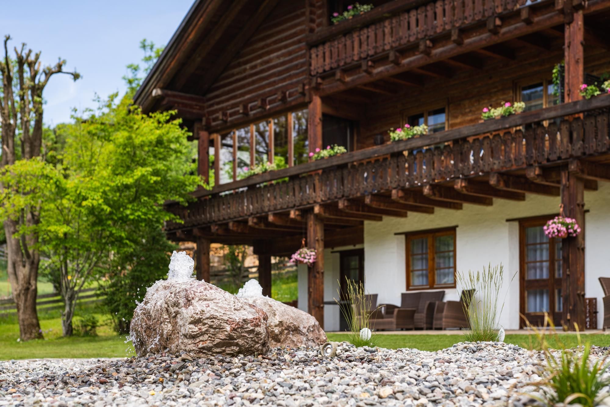 Wir sind große Naturliebhaber lassen uns aber auch gerne verwöhnen. Diese Lebensphilosophie spiegelt sich auch in unserem Biochalet wieder. Mit sehr viel Liebe und individuellen Designes haben wir unsere Appartements gestaltet und freuen uns, eine Entspannungsoase für alle Ruhesuchende geschaffen zu haben. Das im Zeitraum von 1978 - 1980 errichtete Biohaus zählt zu den ersten Alpin-Chalets seiner Art. Erbaut in sorgfältiger Handarbeit, aus mondgeschlagenem Holz, nach baubiologischen Richtlinien, verbindet es altbäuerliche Tradition und zeitgemäße Bautechnologie.