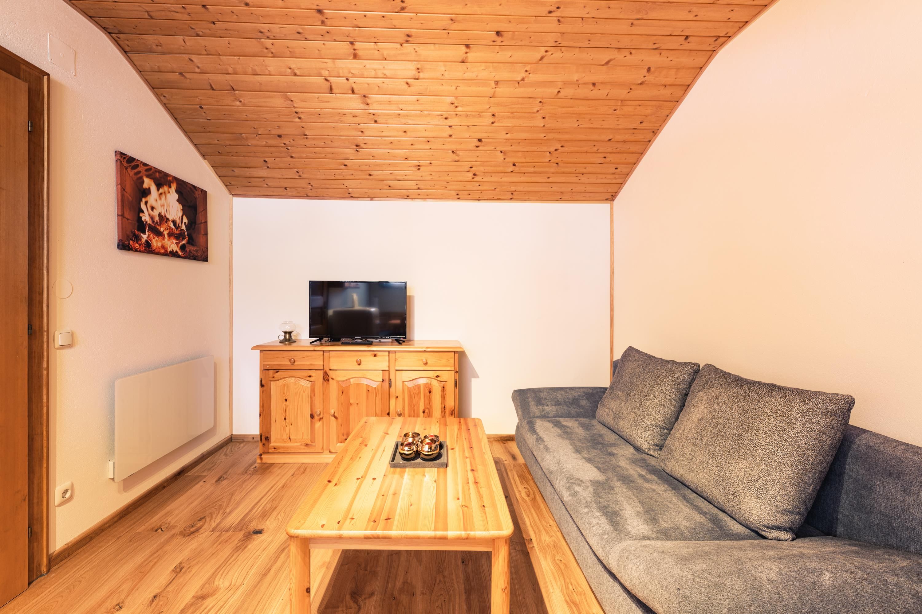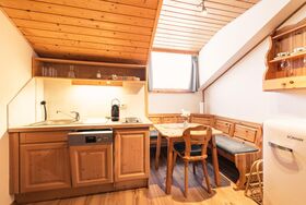 Appartement Nord Gemütlichkeit auf 40m2 für bis zu 2 Personen mit eigenem Eingang. Nach einem großartigen Schitag oder einer ausgedehnten Wanderung können Sie in der gemütlichen Wohnküche auf der Couch, welche auch ausziehbar ist, oder der Eckbank den Tag ausklingen lassen. Wer keine Lust hat auswärts zu Essen, dem bietet die kleine aber gut ausgestattete Küche alles zum Kochen. Es ist alles vorhanden, ein 2 Platten Kochfeld, Geschirr, Geschirrspüler, Spüle, Kühlschrank, Kaffeemaschine und Geschirr. Um richtig ausschlafen zu können gibt es ein Schlafzimmer mit ausreichend Platz für Kleidung ist. Sollte das zu wenig sein gibt es im Vorraum noch zusätzlichen Stauraum. Genießen Sie am Morgen die Zeit im originell gestalteten Badezimmer.
