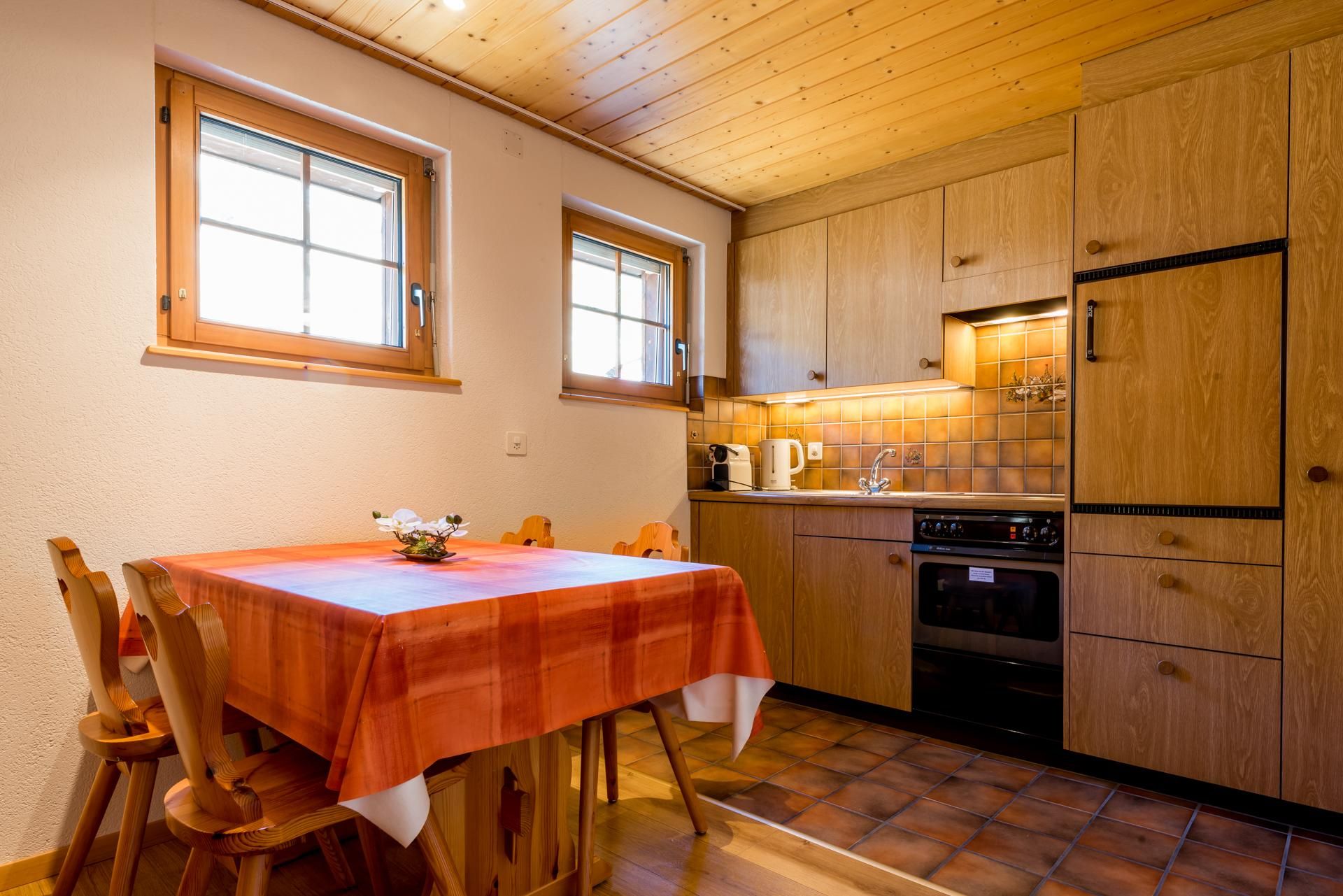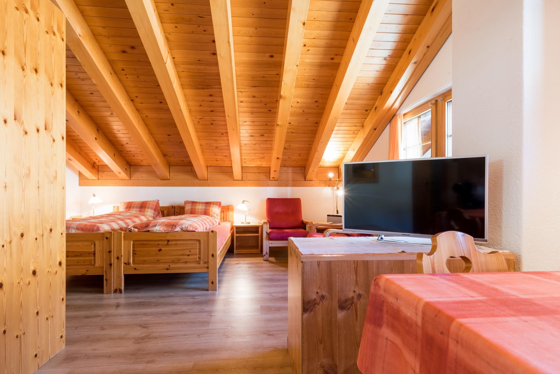 Das Studio bietet Platz für 1 bis 2 Personen und überzeugt durch seine Grosszügigkeit und gepflegte Einrichtung. Es verfügt über einen Wohnschlafraum mit Küche, zwei Betten, einen Südbalkon mit Blick auf die Walliser Viertausender, WLAN und SAT-TV. Zur gemeinschaftlichen Nutzung stehen Lift, Waschmaschine, Trockner sowie ein Skiraum mit moderner Schuhtrocknungs- und Desinfektionsanlage zur Verfügung. Im Sommer lädt eine Liegewiese mit Grillplatz zum Verweilen ein. Die Unterkunft ist eine Nichtraucherwohnung.