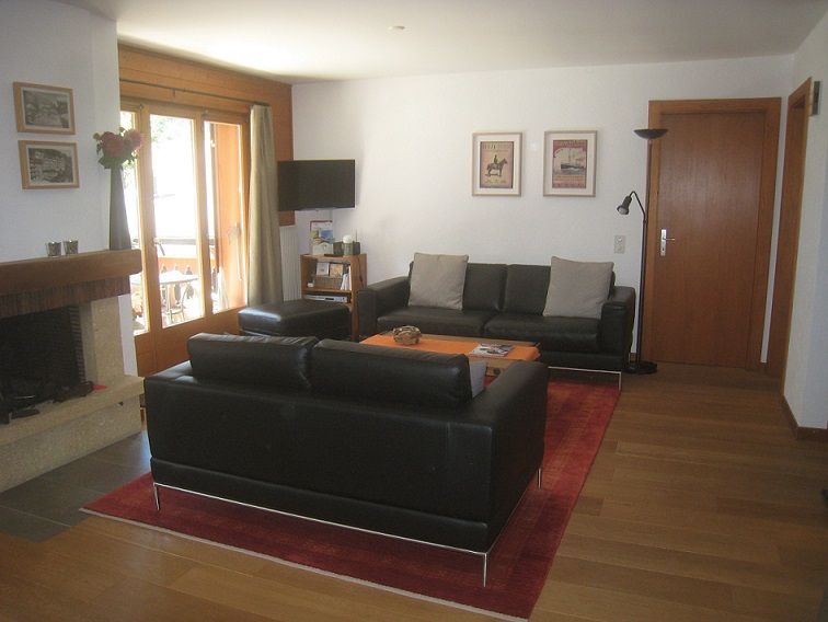 3,5-Zimmer-Wohnung (75m2, 1. Stock) für 5 Personen. Wohnzimmer mit Kamin und Essecke (Wifi, TV), offene Küche (Glaskeramikherd, Geschirrspüler, Backofen, Mikrowelle, Kaffeemaschine, Fondue- und Raclette-Set). 1 Schlafzimmer mit 1 Doppelbett und 1 Schlafzimmer mit 1 Etagenbett und 1 Einzelbett. 2 Badezimmer (1x Badewanne/WC, 1x Dusche/WC), Balkon, 1 Außenstellplatz.