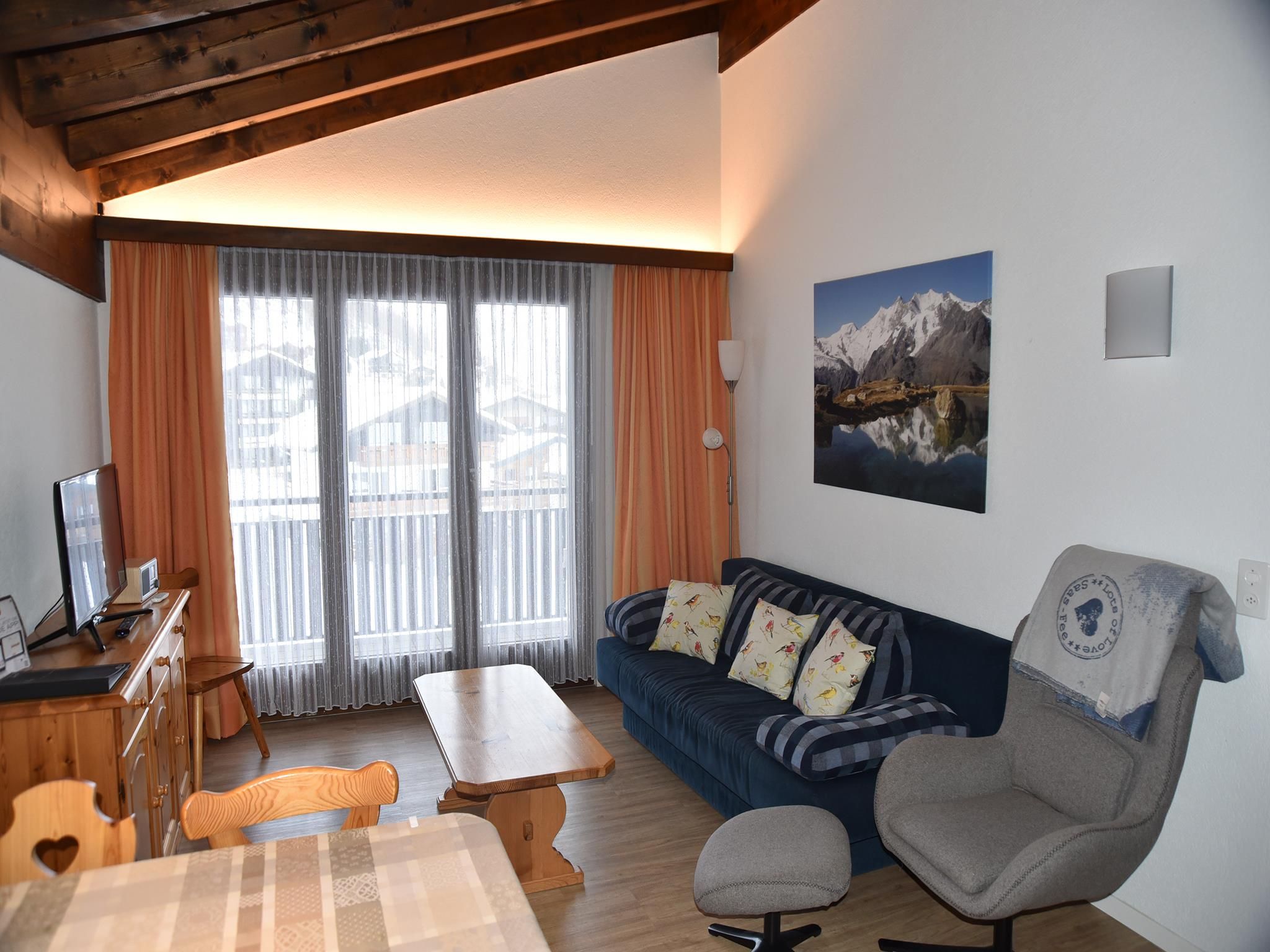 Gepflegte, ruhige Attika 3-Zimmerwohnung (ca.70 m2) direkt an der Skipiste sowie die Kinderlifte.