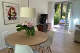 Das Innere der Wohnung besticht durch ein helles Wohnzimmer, das mit einem bequemen Esstisch, einer Sitzecke sowie einem TV und WLAN ausgestattet ist. Eine kleine, aber feine offene Küche, die keine Wünsche offenlässt, verfügt über ein Cerankochfeld, eine Kapsel-Kaffeemaschine von Nespresso, einen Geschirrspüler und einen kleinen Balkon für Morgenkaffee oder Abendwein. Das gemütliche Schlafzimmer mit einem einladenden Doppelbett ist abdunkelbar, garantiert ruhige Nächte und das moderne Bad enthält eine ebenerdige Dusche, die höchsten Komfort bietet.