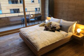 Penthouse Wohnung mit 4 Zimmern und 3 Balkonen, moderne Einrichtung mit Holzoberflächen, die Ihrem Urlaub eine schöne Stimmung verleihen und Ihre Wohnung warm und einladend gestalten. Eigener Wellnessbereich mit Sauna/Whirlpool in der Wohnung.