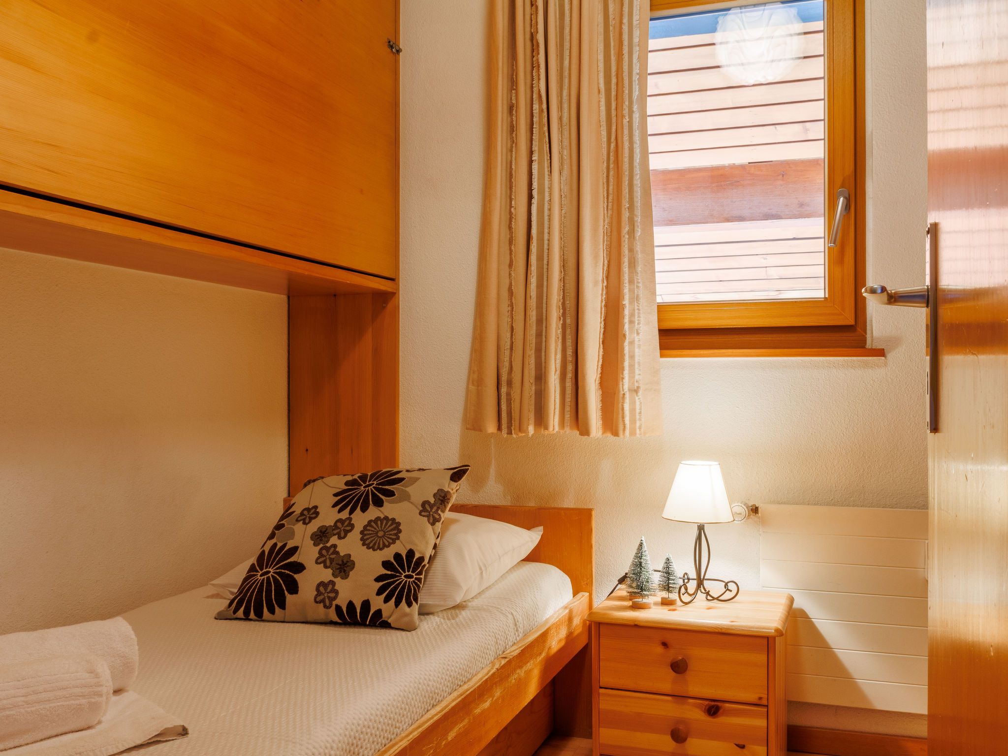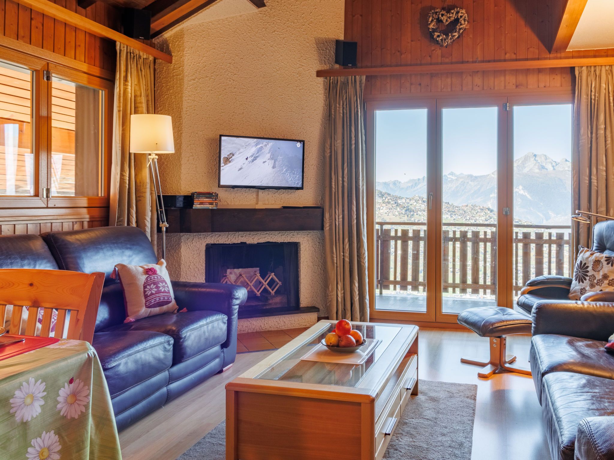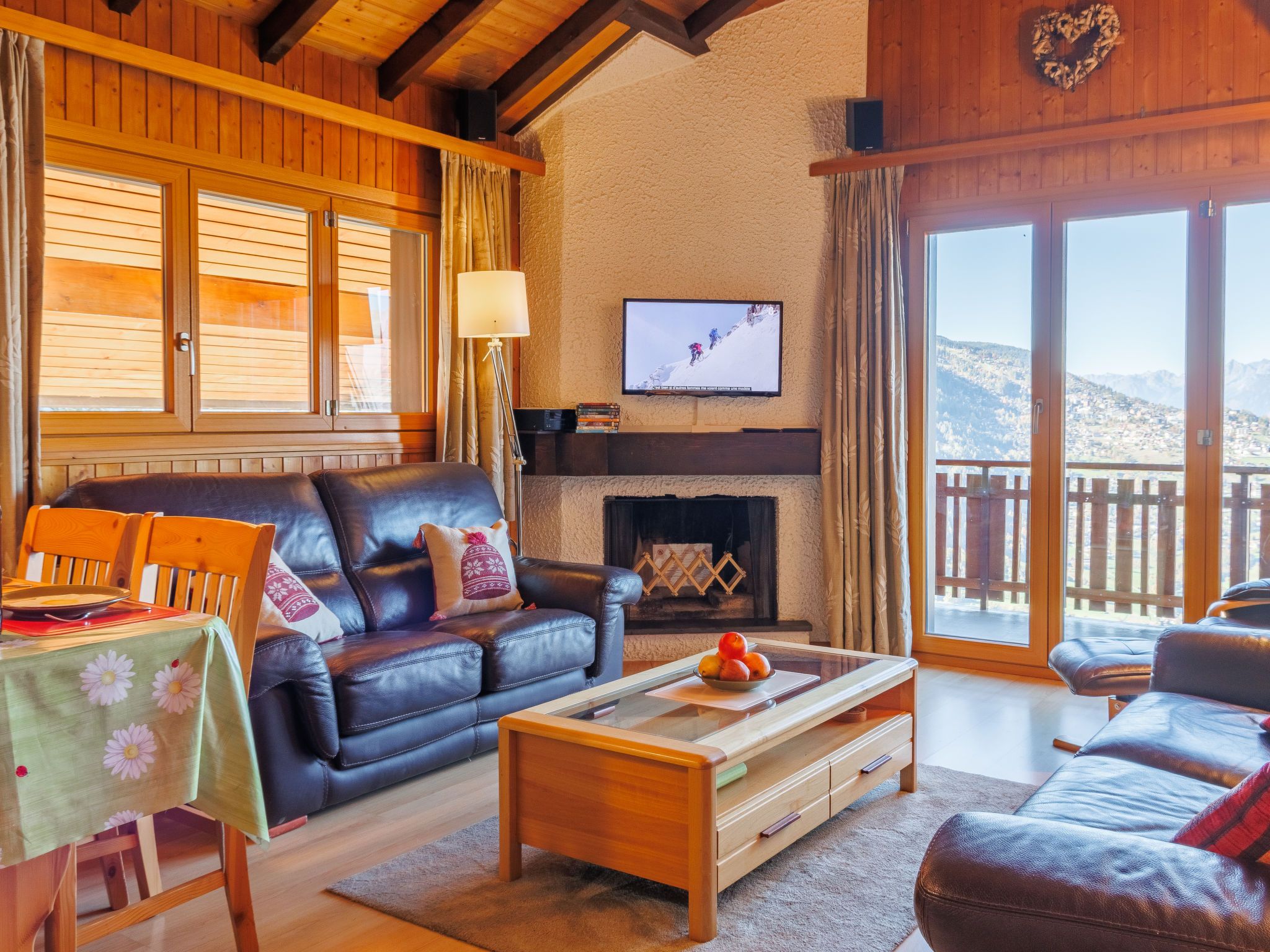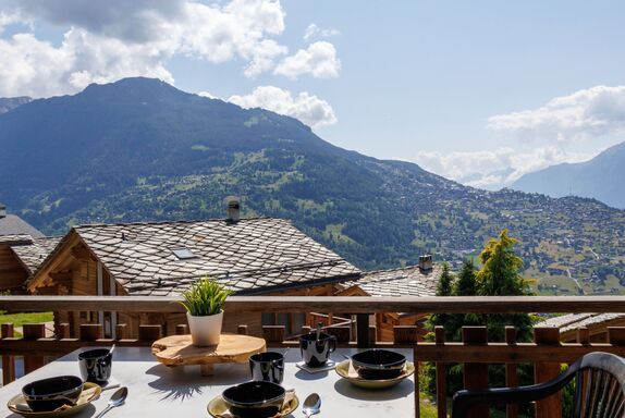 Hortensia 33, 4-Zimmer-Attikawohnung 70 m2 im 3. Stock. Teilweise renoviert, schön eingerichtet: Eingang. Wohn-/Esszimmer mit offenem Kamin (nur Deko), Kabel-TV und DVD. Ausgang zum Balkon, Richtung Westen und Richtung Osten. 1 Zimmer mit 2 Betten. Ausgang zum Balkon, Richtung Osten. 1 Zimmer mit 2 Betten. 1 Kinderzimmer mit 1 x 2 Etagenbetten. Offene Küche (Backofen, Geschirrspüler, 4 Induktionskochplatten, Toaster, Wasserkocher, Mikrowelle, elektrische Kaffeemaschine, Fondue Set (Käse)). Bad/WC, Dusche/WC. 2 Balkone. Balkonmöbel. Sehr schöne Sicht auf die Berge und das Tal. Zur Verfügung: Haartrockner. Internet (WLAN, gratis). Bitte beachten: Nichtraucher-Unterkunft, kein Parkplatz.