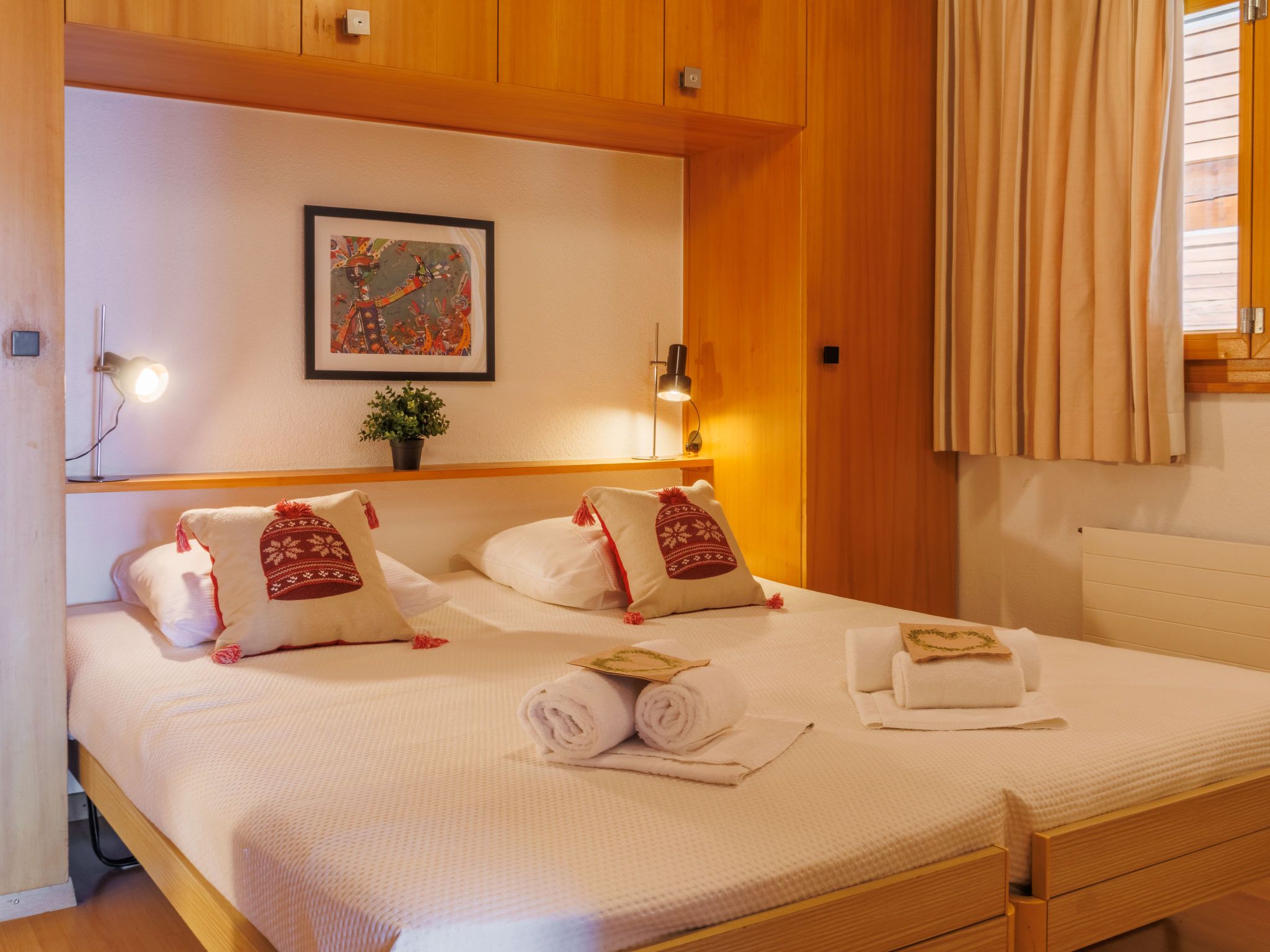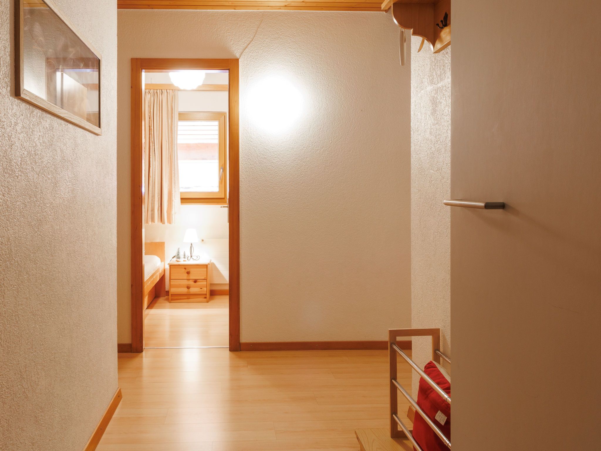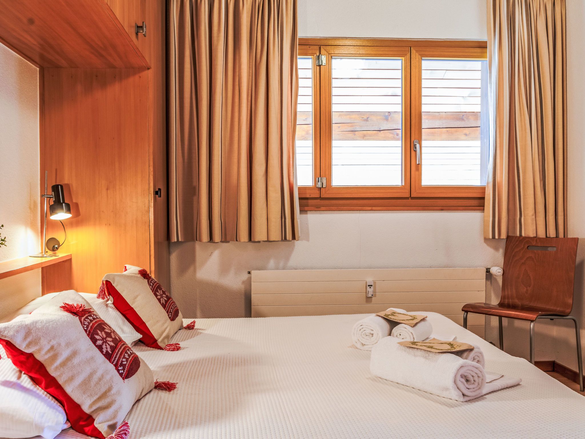 Hortensia 33, 4-Zimmer-Attikawohnung 70 m2 im 3. Stock. Teilweise renoviert, schön eingerichtet: Eingang. Wohn-/Esszimmer mit offenem Kamin (nur Deko), Kabel-TV und DVD. Ausgang zum Balkon, Richtung Westen und Richtung Osten. 1 Zimmer mit 2 Betten. Ausgang zum Balkon, Richtung Osten. 1 Zimmer mit 2 Betten. 1 Kinderzimmer mit 1 x 2 Etagenbetten. Offene Küche (Backofen, Geschirrspüler, 4 Induktionskochplatten, Toaster, Wasserkocher, Mikrowelle, elektrische Kaffeemaschine, Fondue Set (Käse)). Bad/WC, Dusche/WC. 2 Balkone. Balkonmöbel. Sehr schöne Sicht auf die Berge und das Tal. Zur Verfügung: Haartrockner. Internet (WLAN, gratis). Bitte beachten: Nichtraucher-Unterkunft, kein Parkplatz.