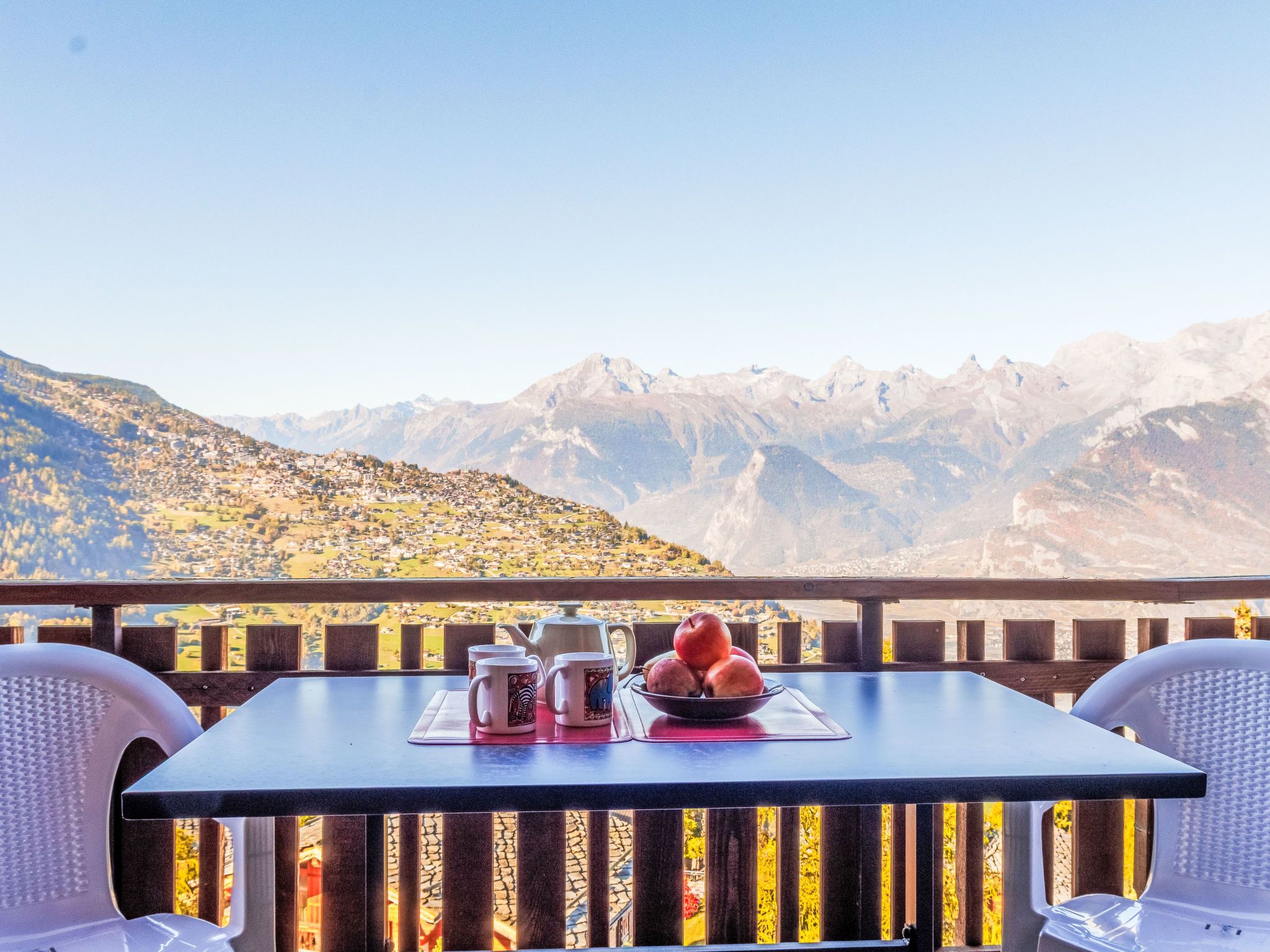 Appartementhaus Hortensia. Im Ortszentrum, am Hang. Im Hause: Fahrstuhl, Zentralheizung, Waschmaschine (extra), Wäschetrockner (zur Mitbenutzung, extra). Öffentliches Parkhaus in 500 m, extra. Einkaufsgeschäft, Restaurant 100 m, Bushaltestelle Veysonnaz Station 350 m, Bahnstation Gare de Sion 14 km, Hallenbad 50 m. Tennis 400 m, Gondelbahn 500 m, Skibushaltestelle 100 m. Bekannte Skigebiete sind gut erreichbar: Veysonnaz 4 Vallées 500 m. Wandergebiete: Bisse de Vex 250 m. Bitte beachten: Der Besitzer akzeptiert keine Jugendgruppen. Gratis Skibus.