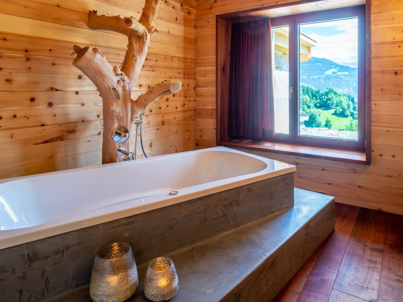 Die Böden und Möbel sind aus massivem Robinienholz angefertigt.